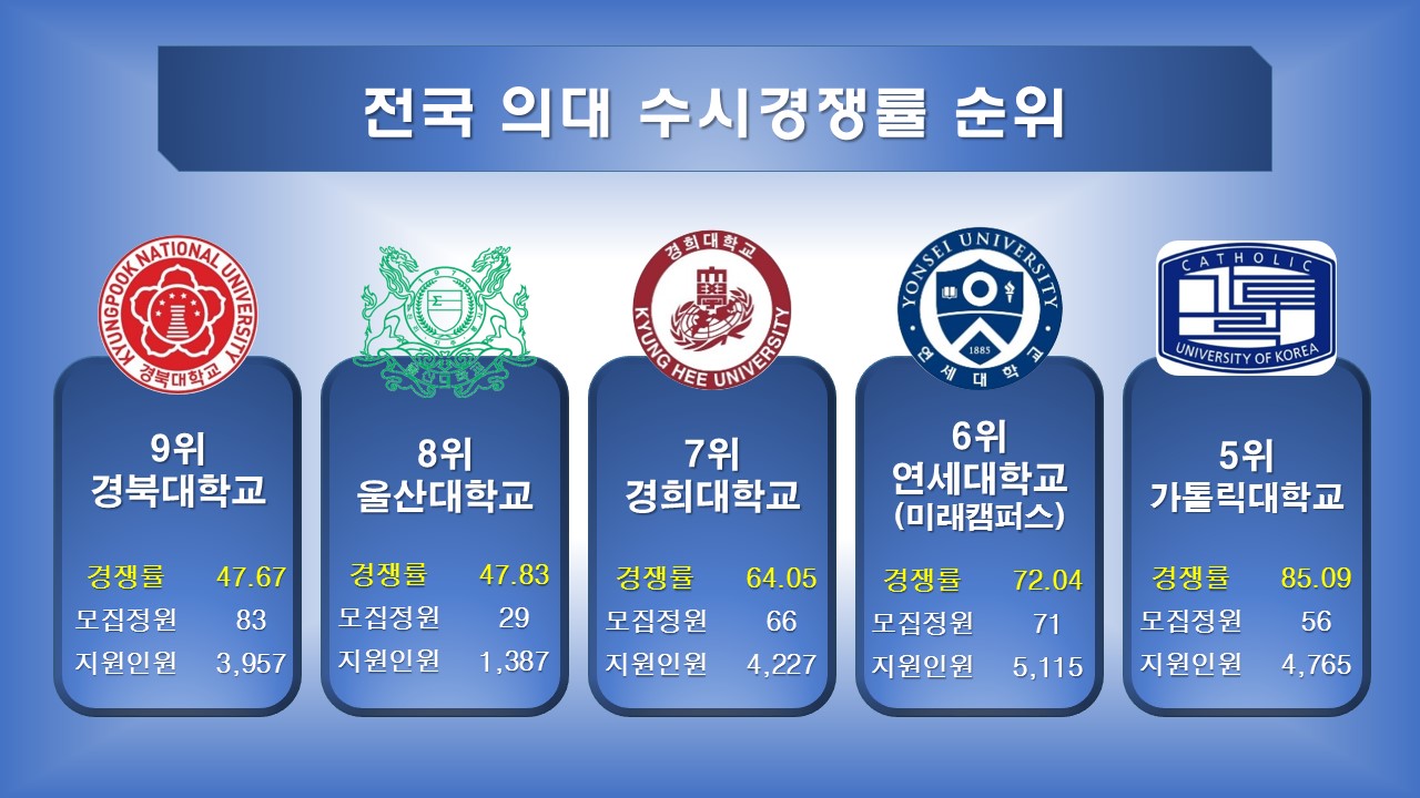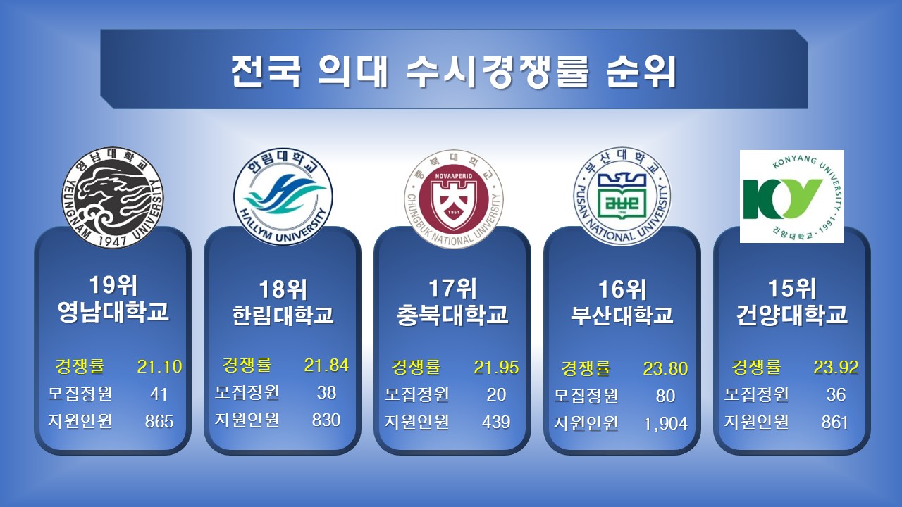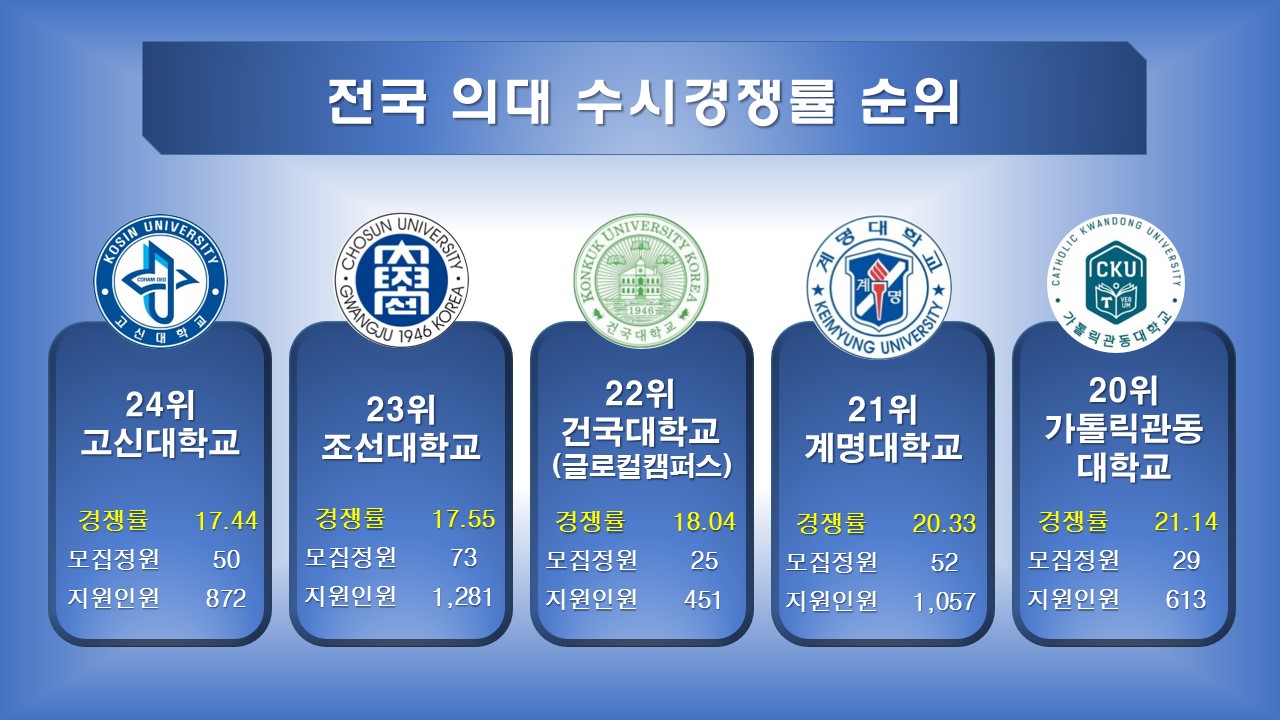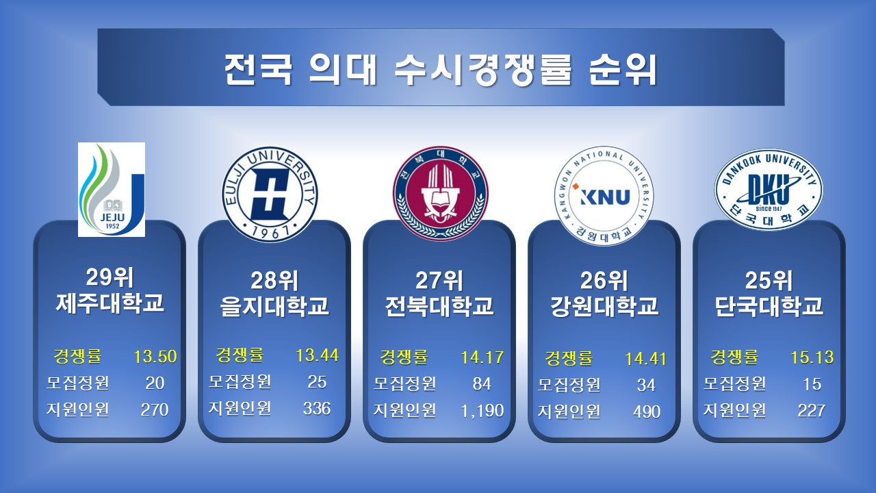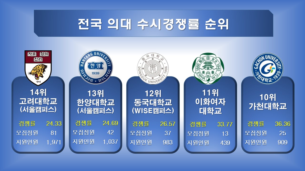 수시모집 경쟁률 순위를 살펴보셨습니다.