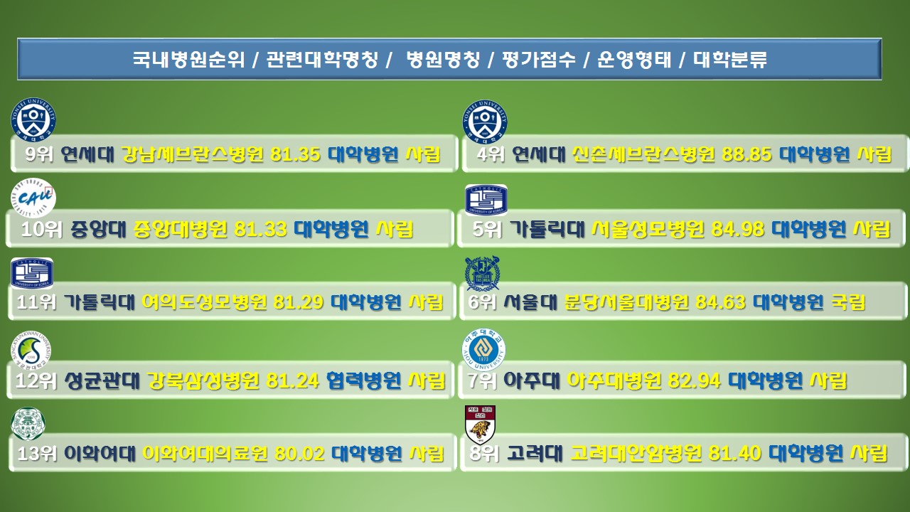 국내 유수의 대형병원이 총망라된 순위만큼이나