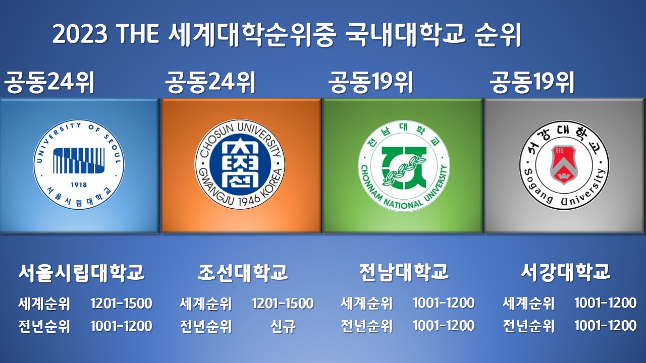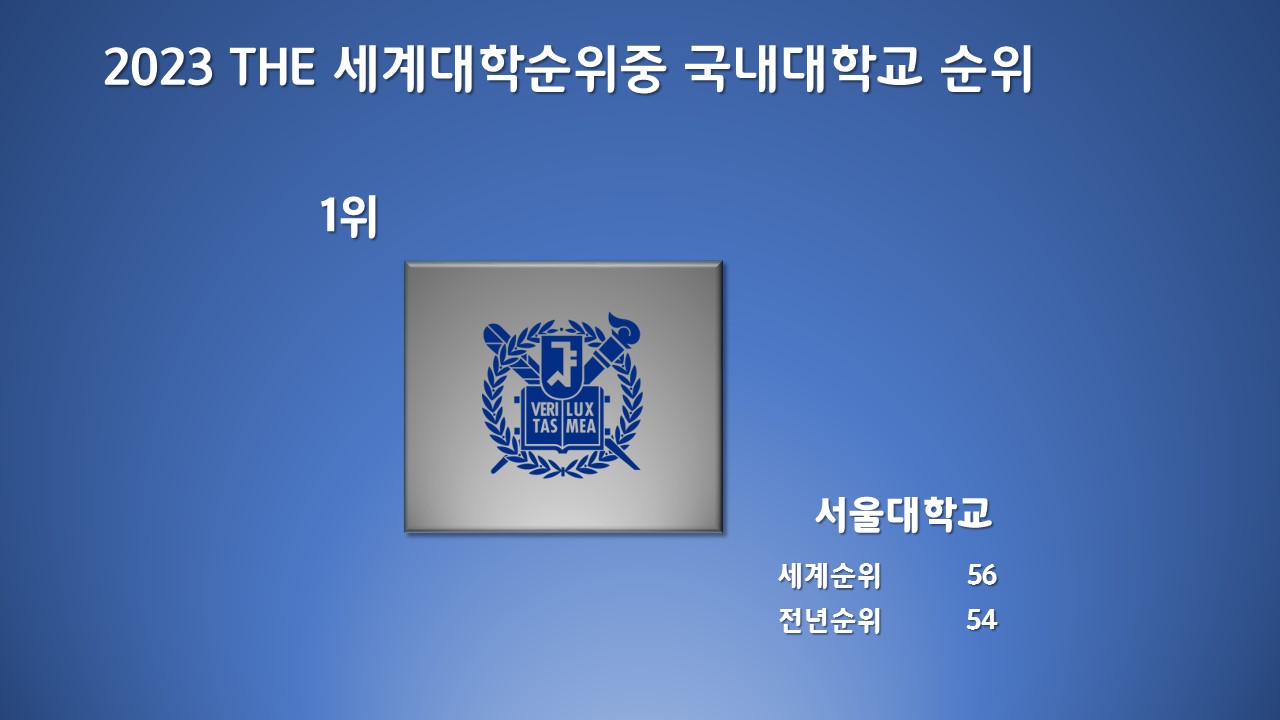 이번 시간에는 최근 발표된 영국 대학평가기관 'THE'에서