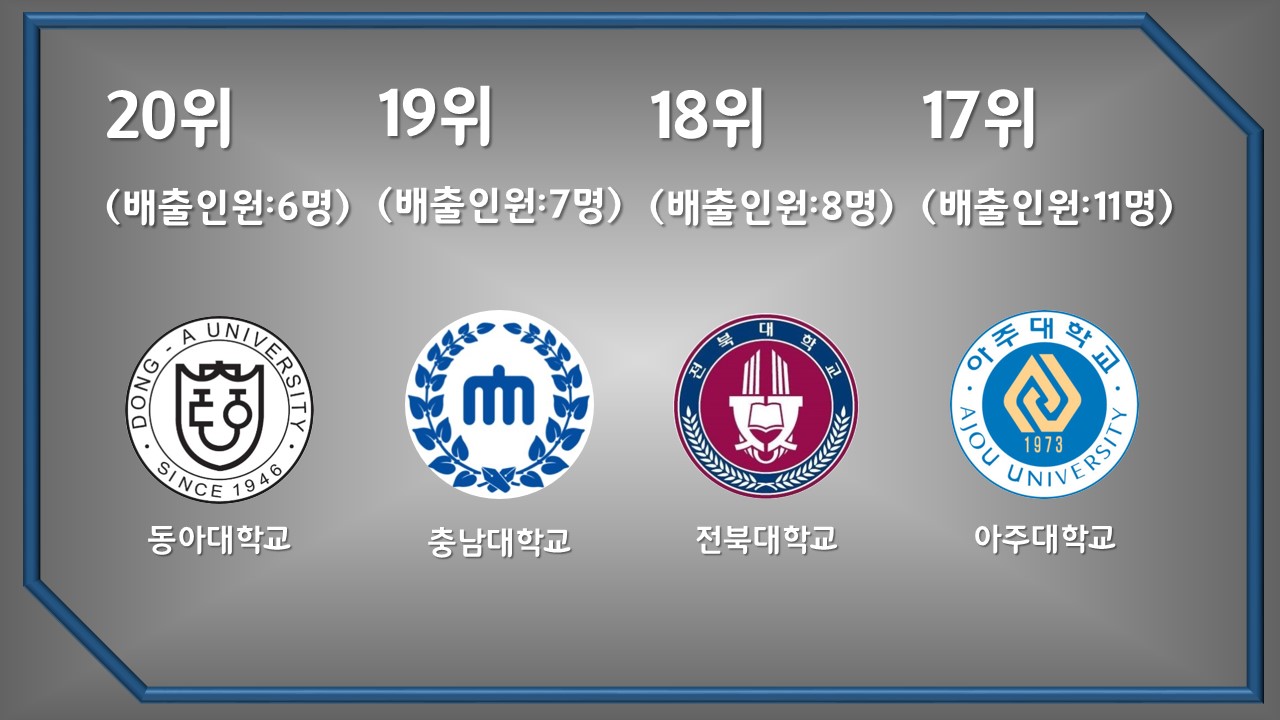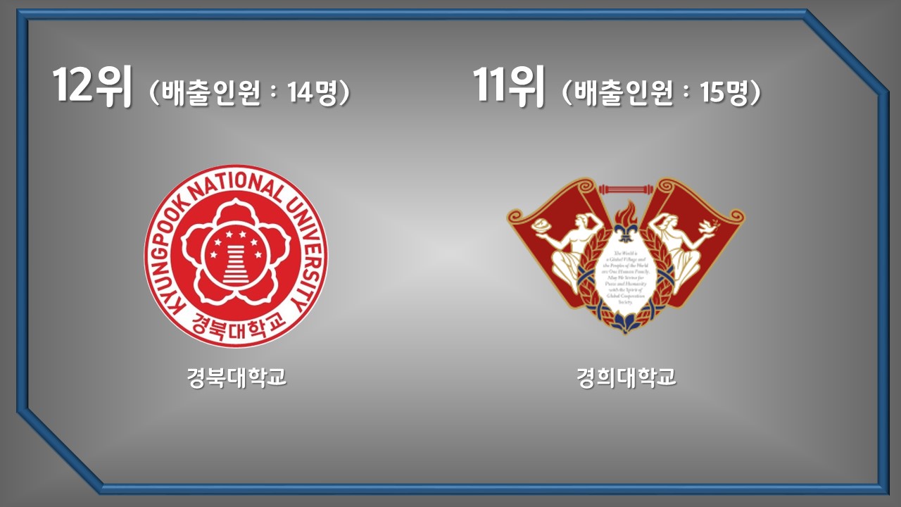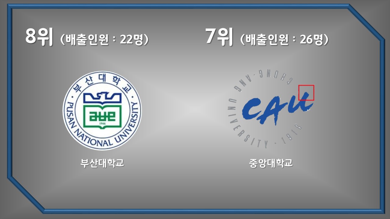 2차 합격자를 기준으로 출신대학 순위를 산정하였습니다.