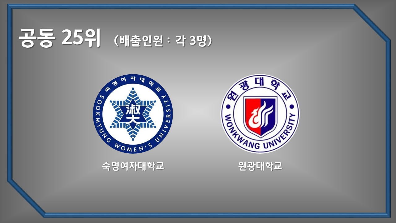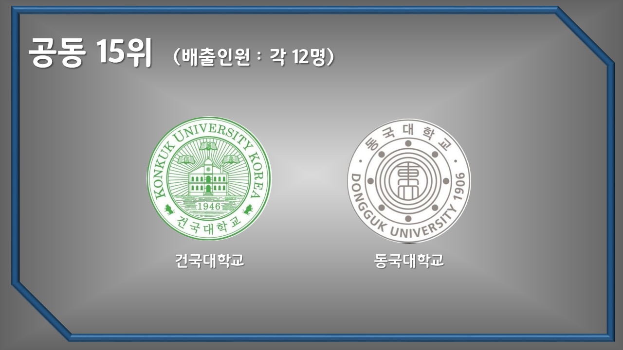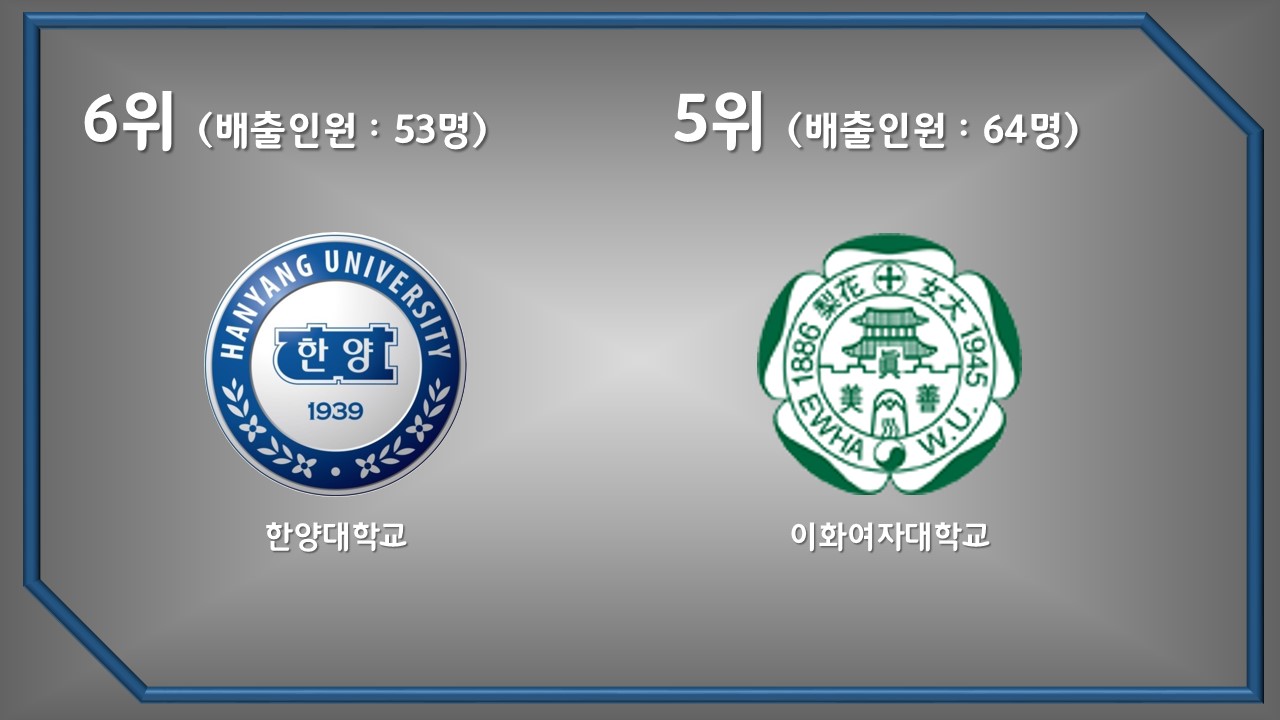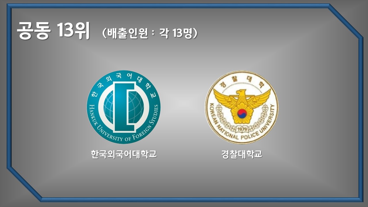 2차 합격자를 기준으로 출신대학 순위를 산정하였습니다.