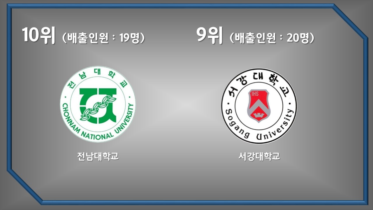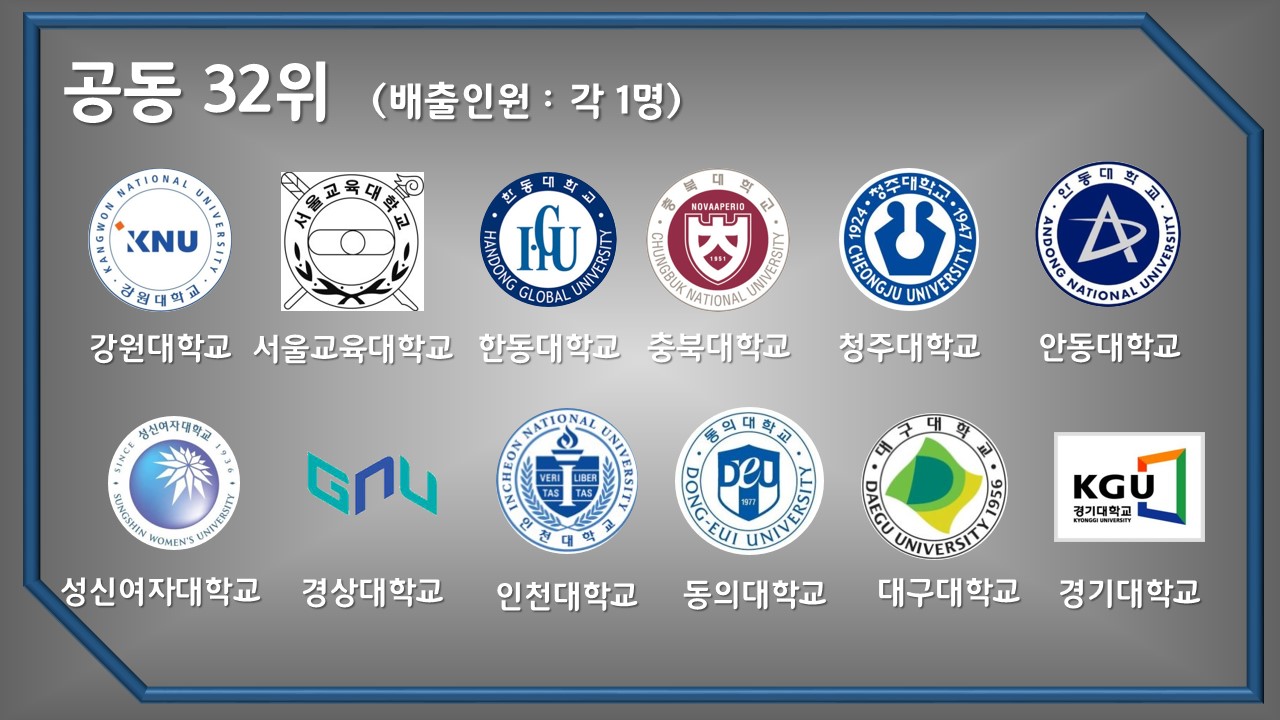 2차 합격자 출신대학교 순위를 알아보고자 합니다.