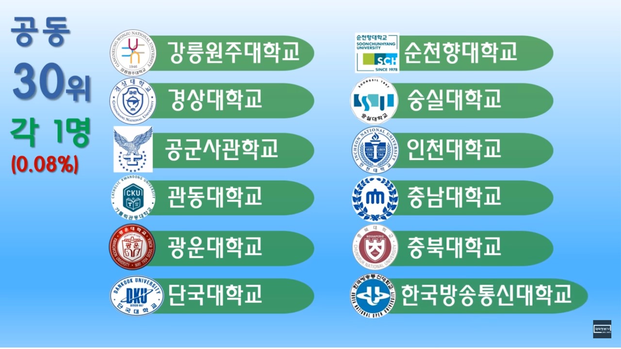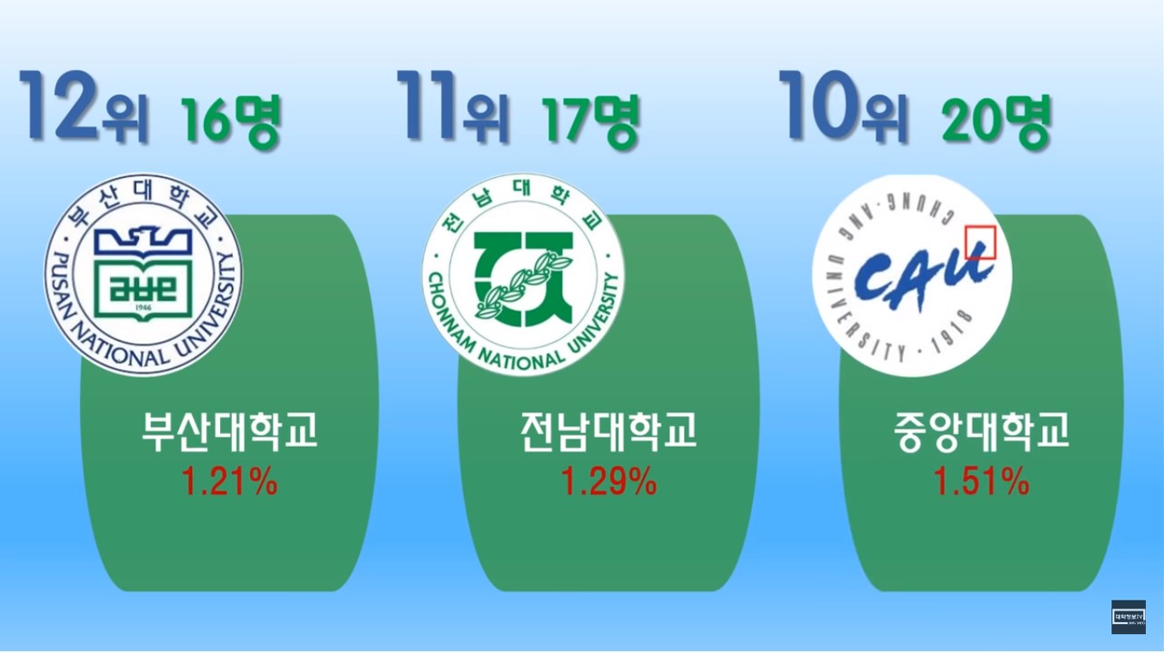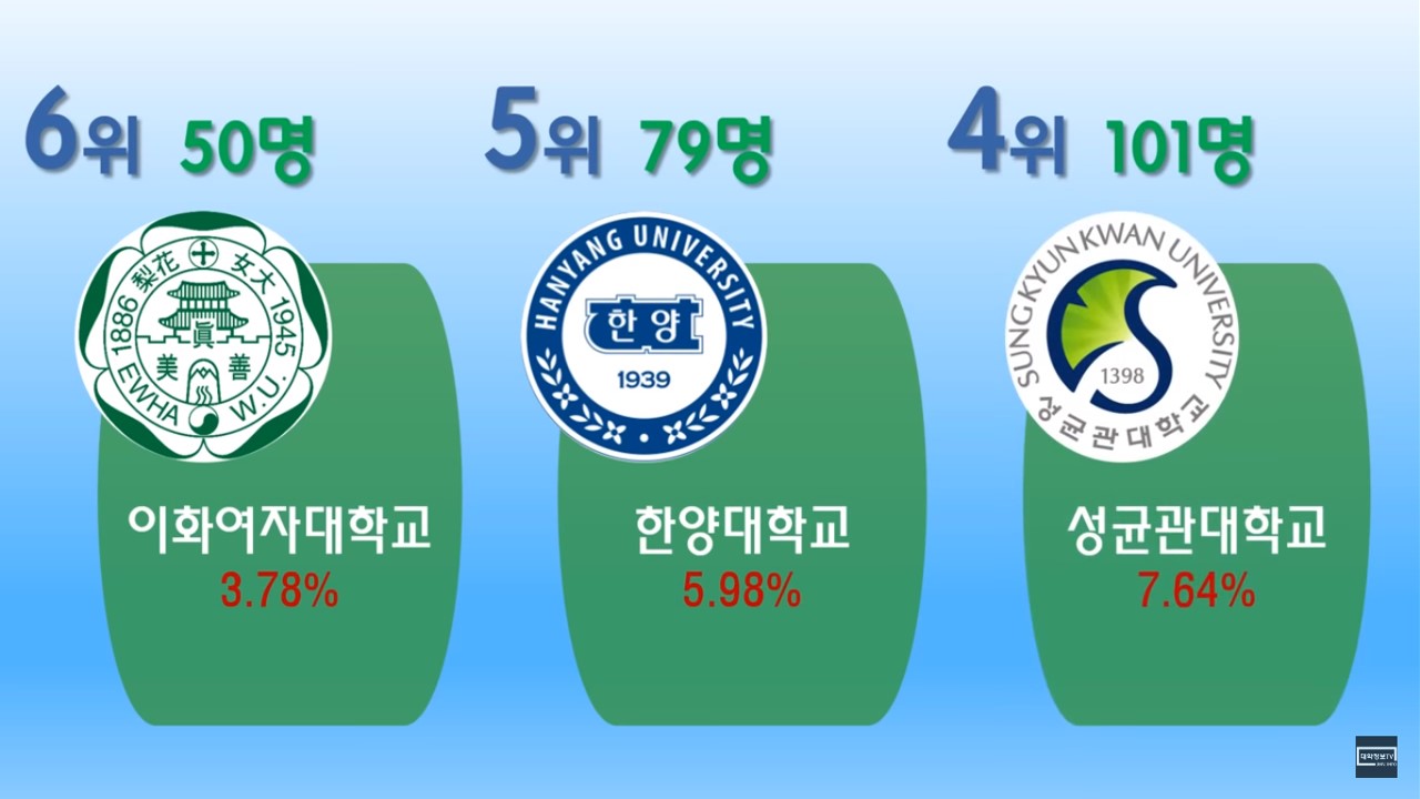 그럼 또다른 출신대학 순위자료로 찾아오겠습니다.