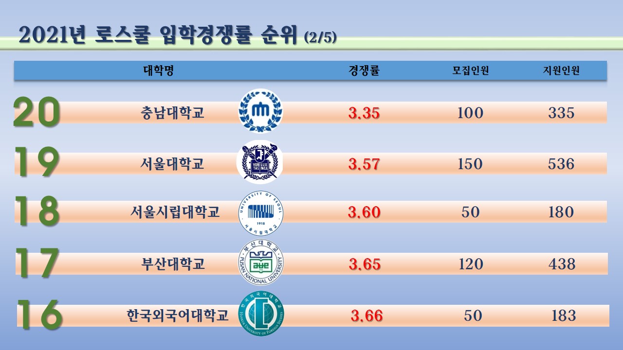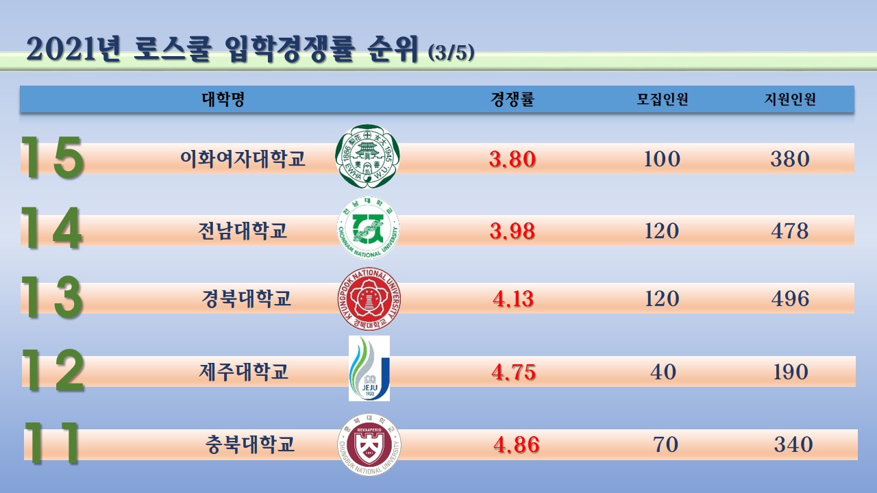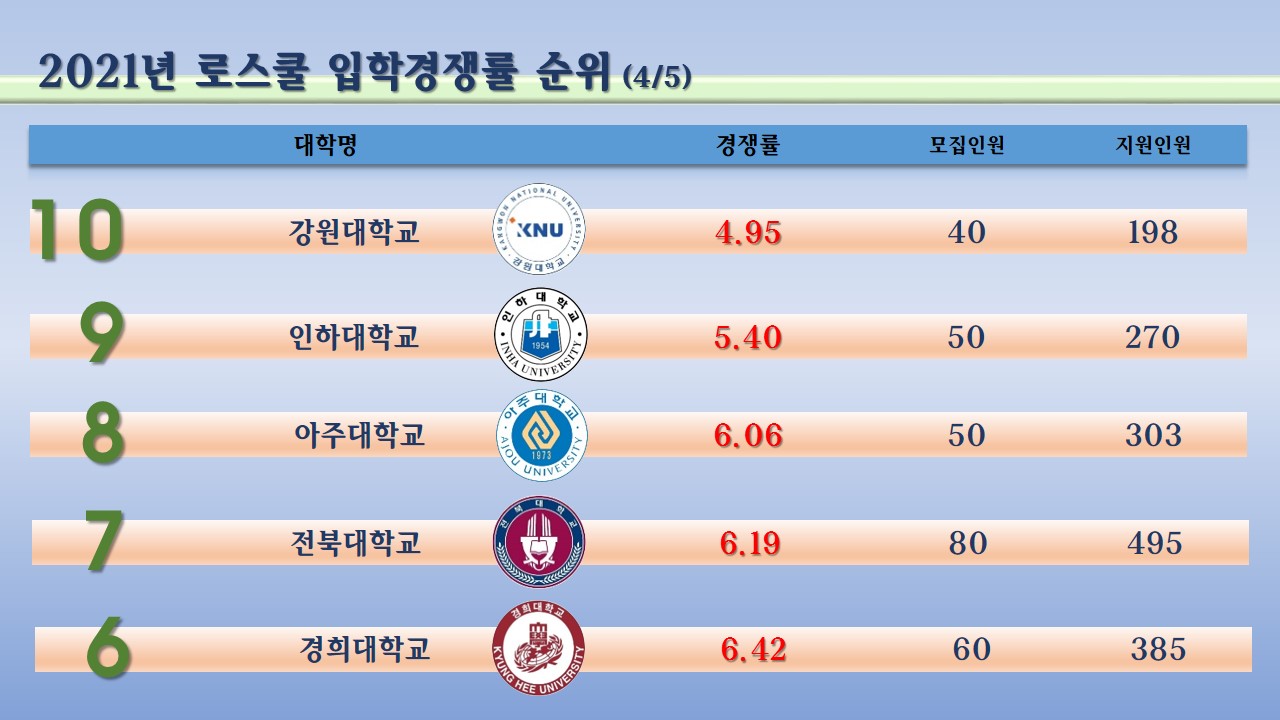 이상의 내용으로 로스쿨에 대한 경쟁률을 확인해 보셨는데요.