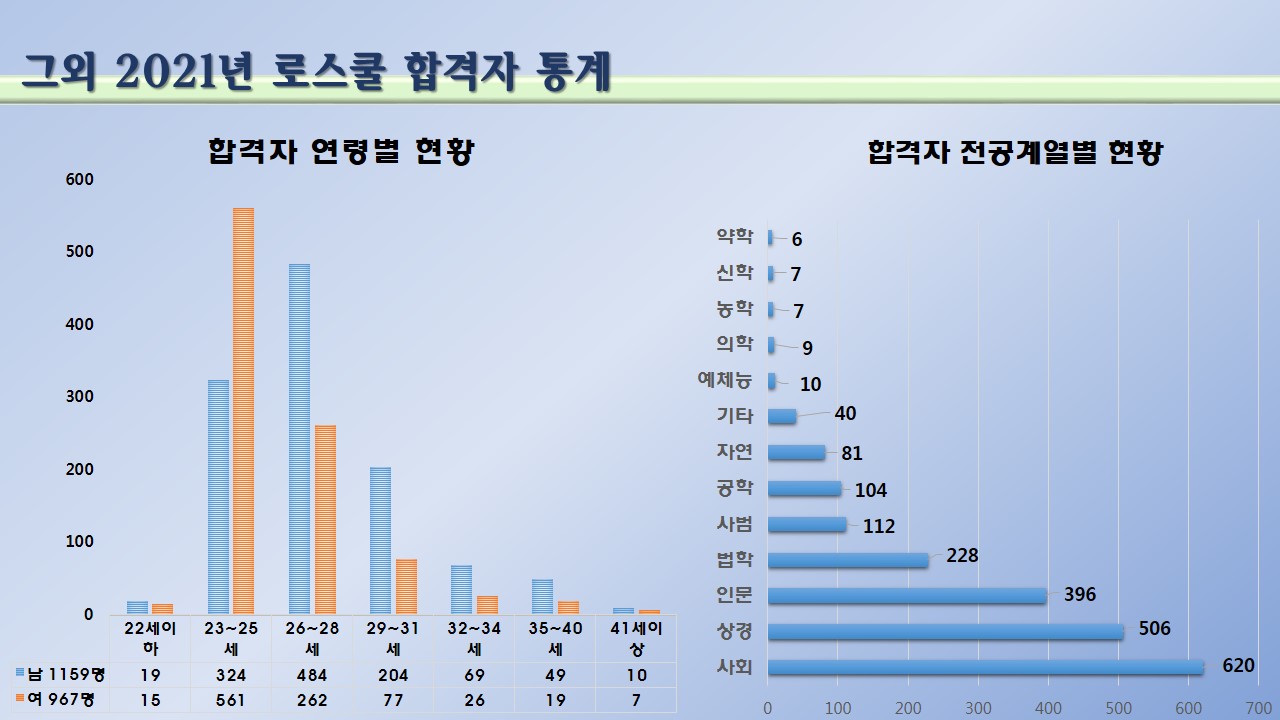 이번에는 지난 3월 24일 발표된 '21학년 법학전문대학원(로스쿨) 합격자