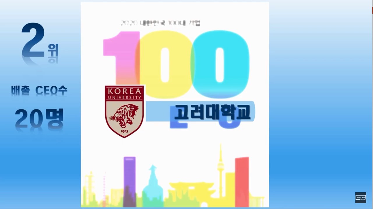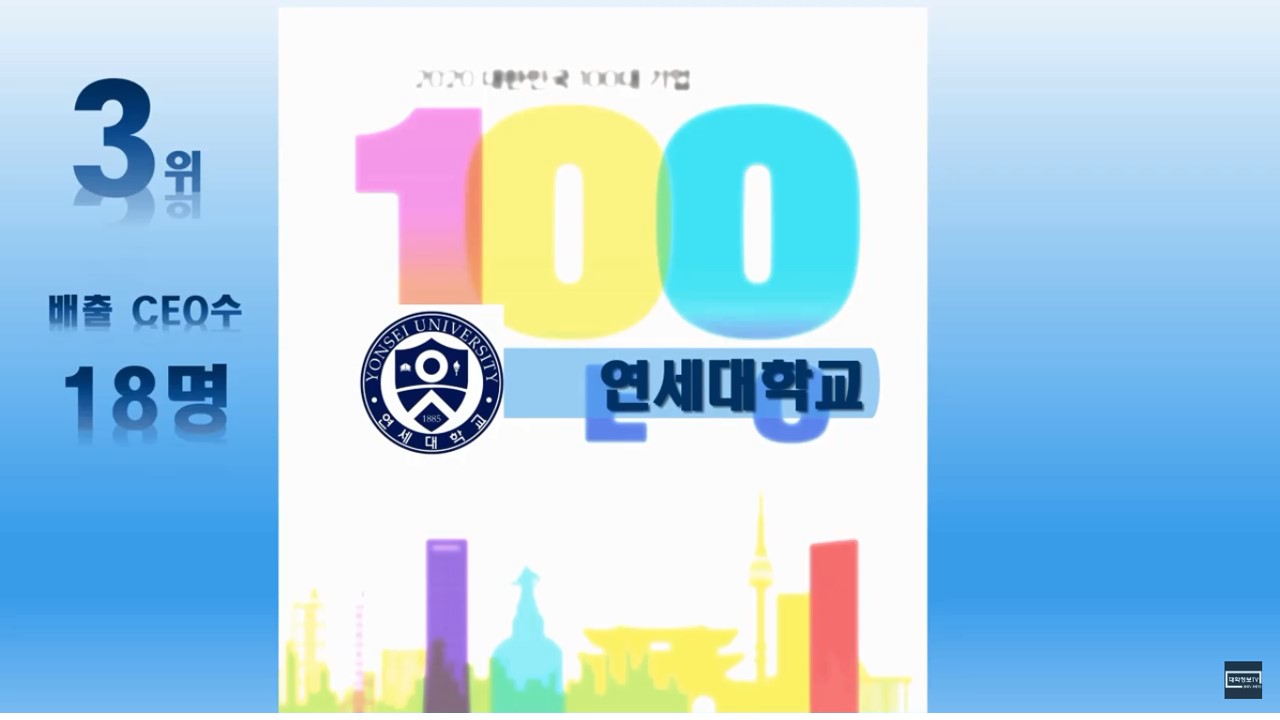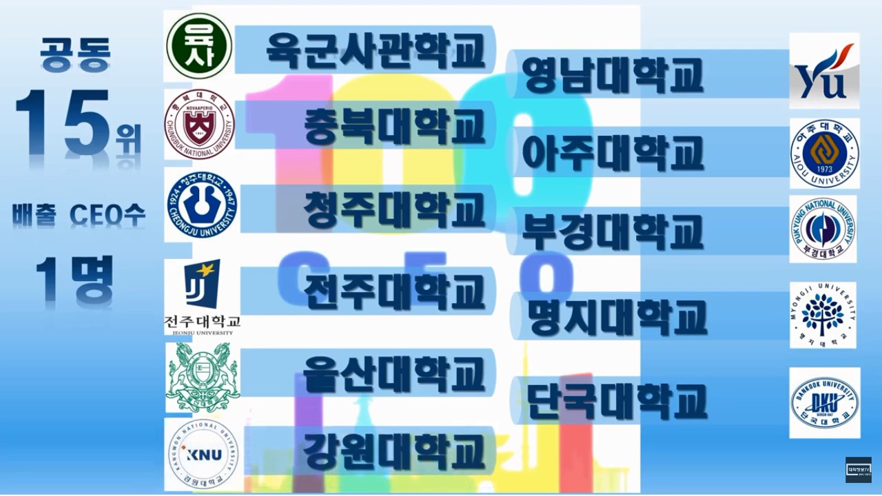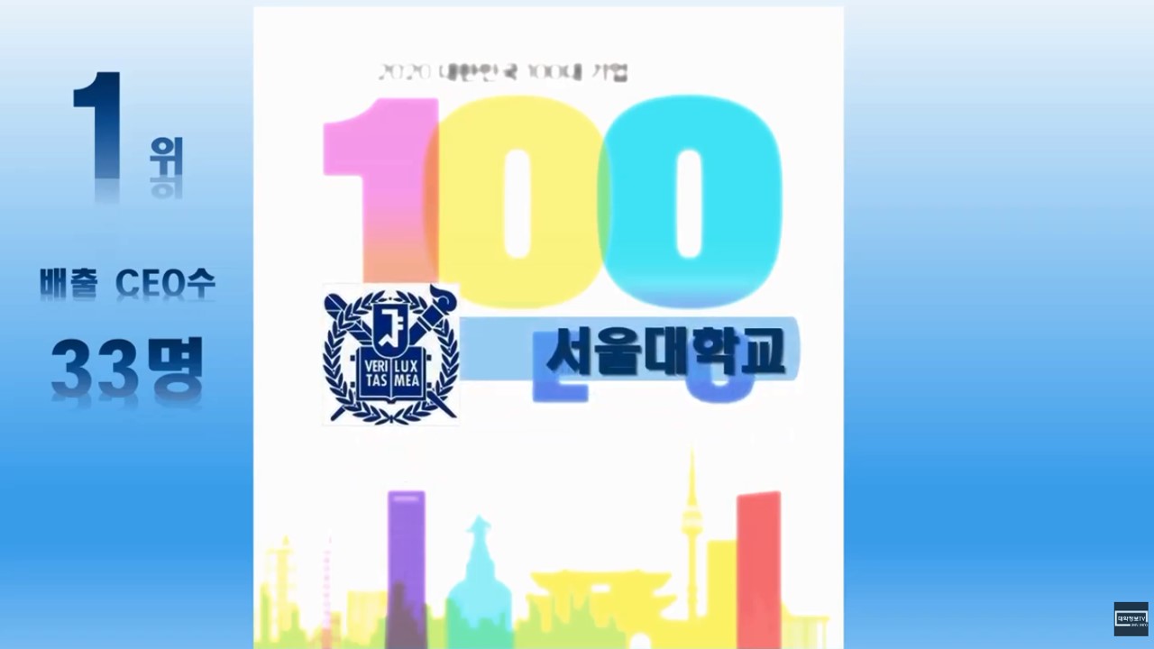 이번에는 매출액 기준으로 국내 100대 기업 CEO의 출신 대학교 순위를 정리해 보았습니다.