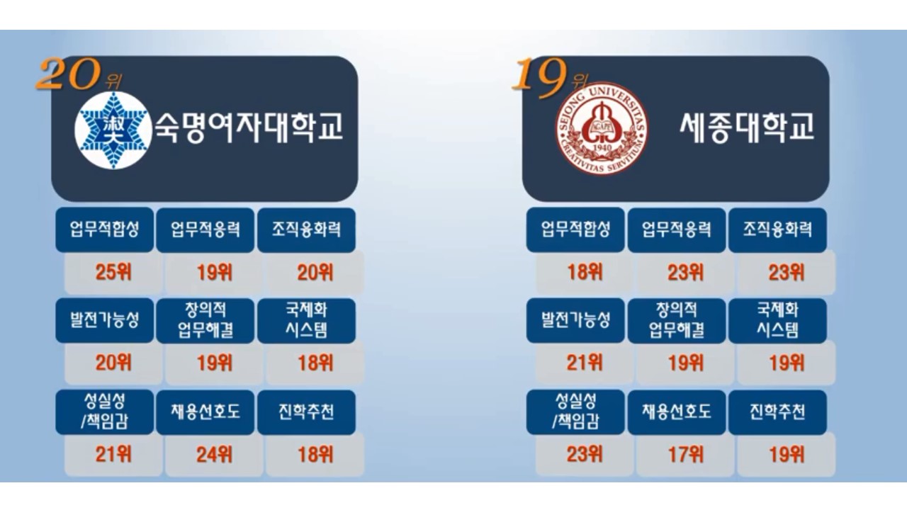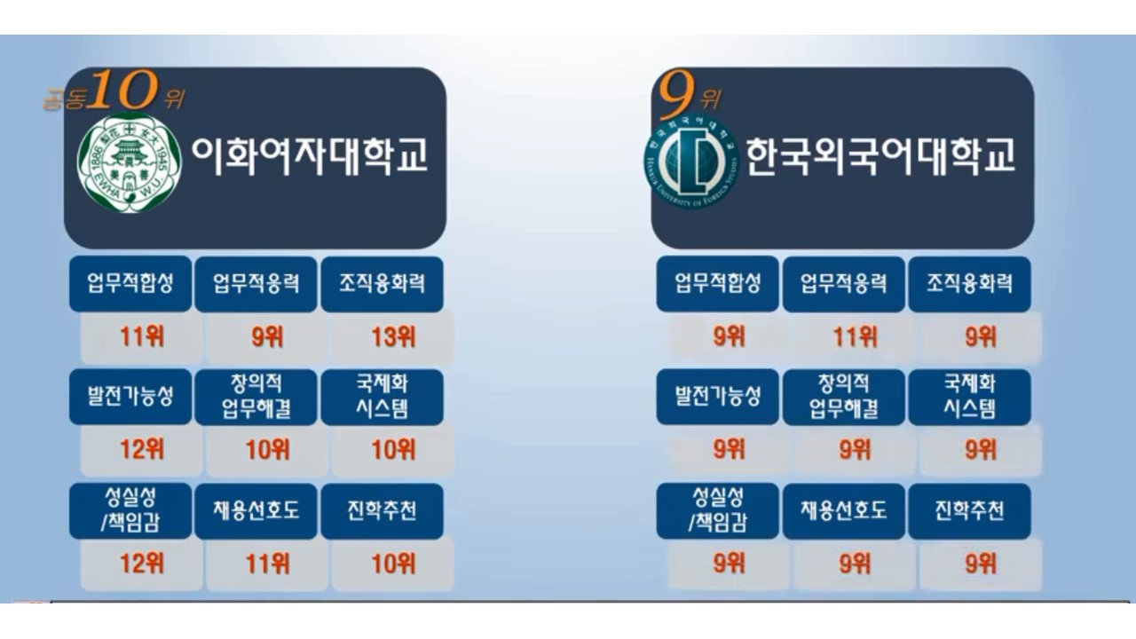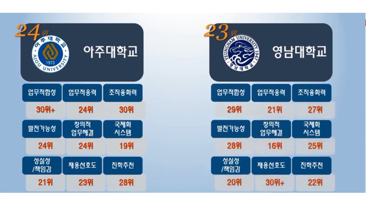 경영대학분야에 쌓아놓은 축적이 고려대에겐 많은 순위향상을 불러 오는 것 같습니다.