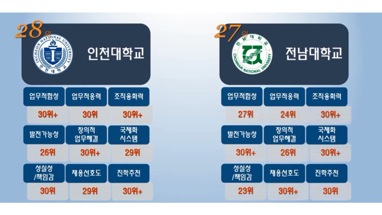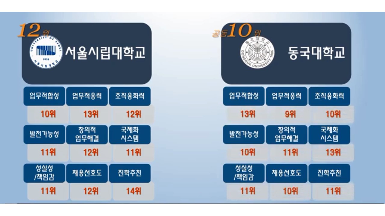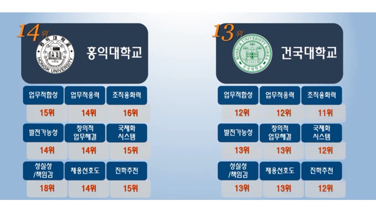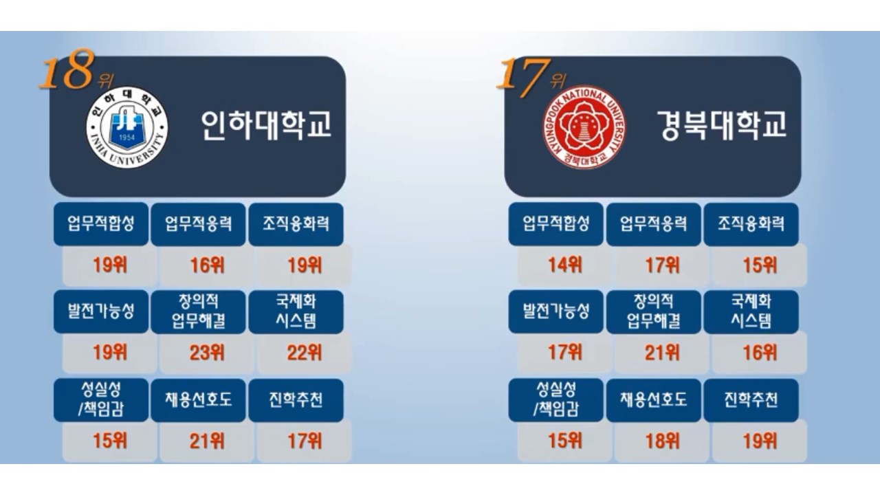 경영대학분야에 쌓아놓은 축적이 고려대에겐 많은 순위향상을 불러 오는 것 같습니다.
