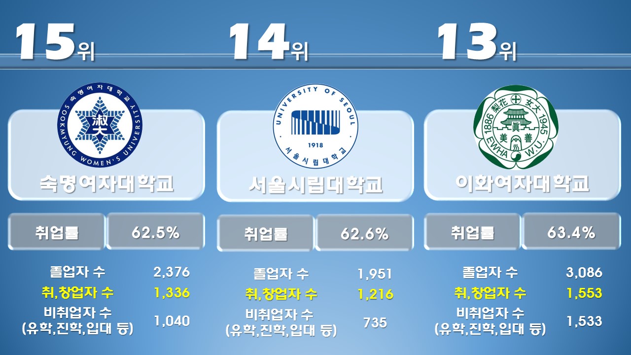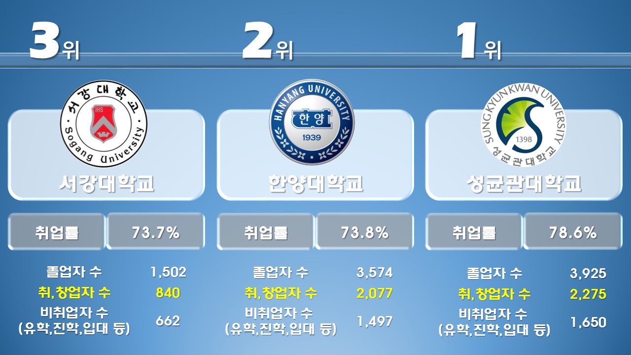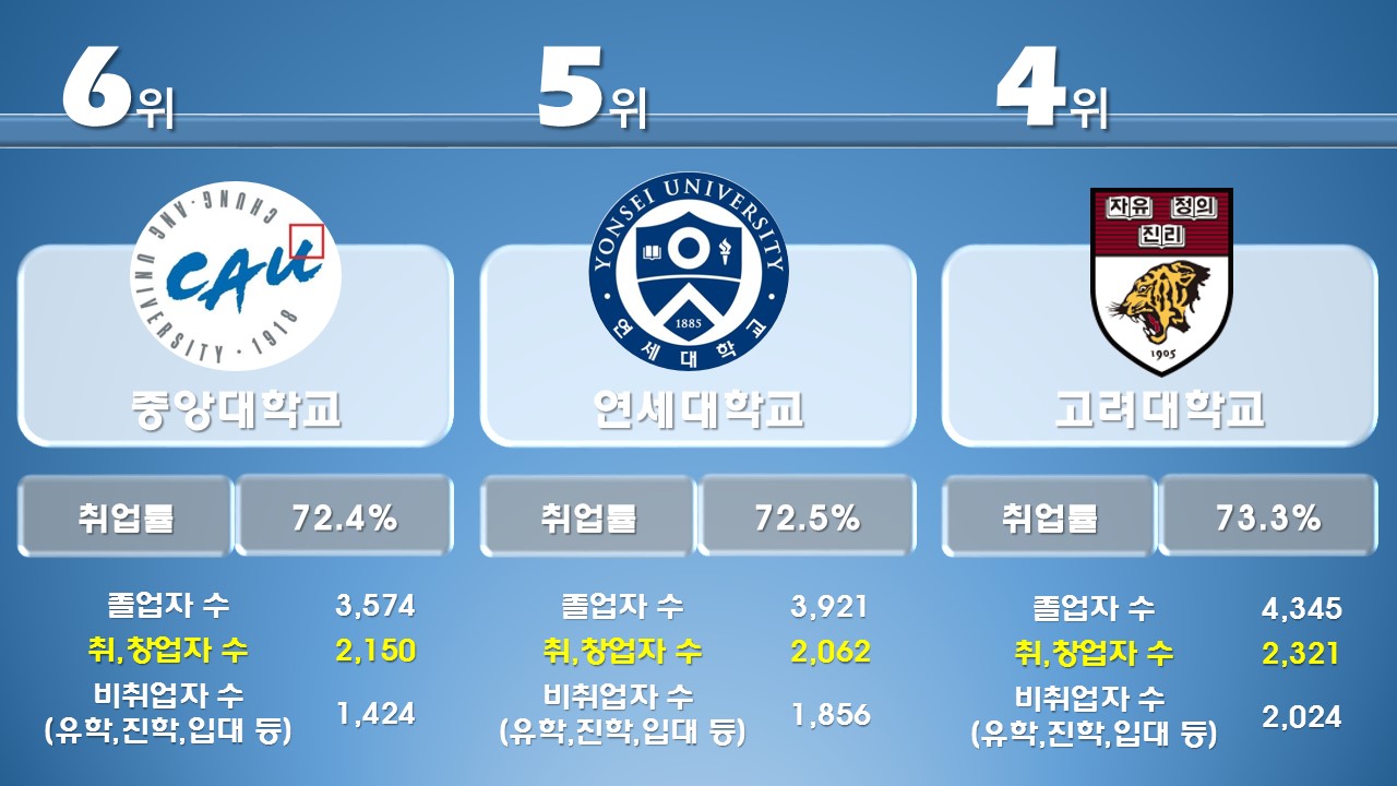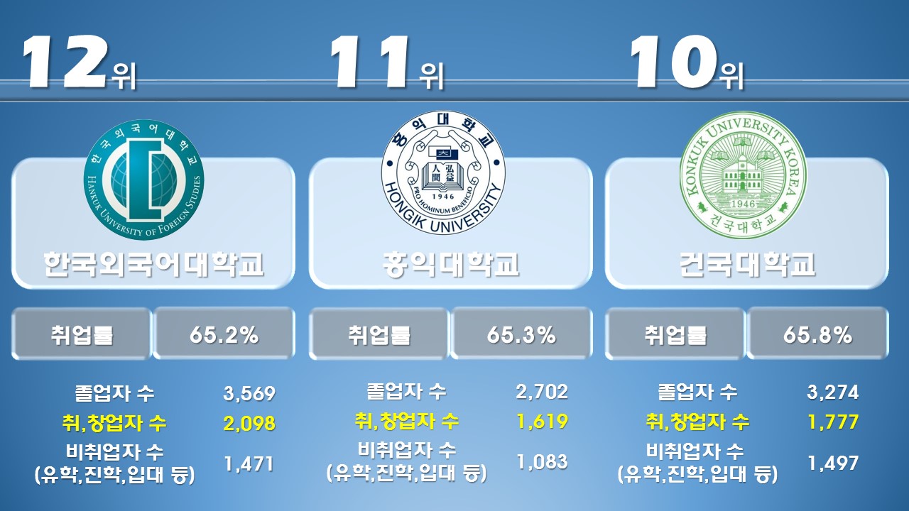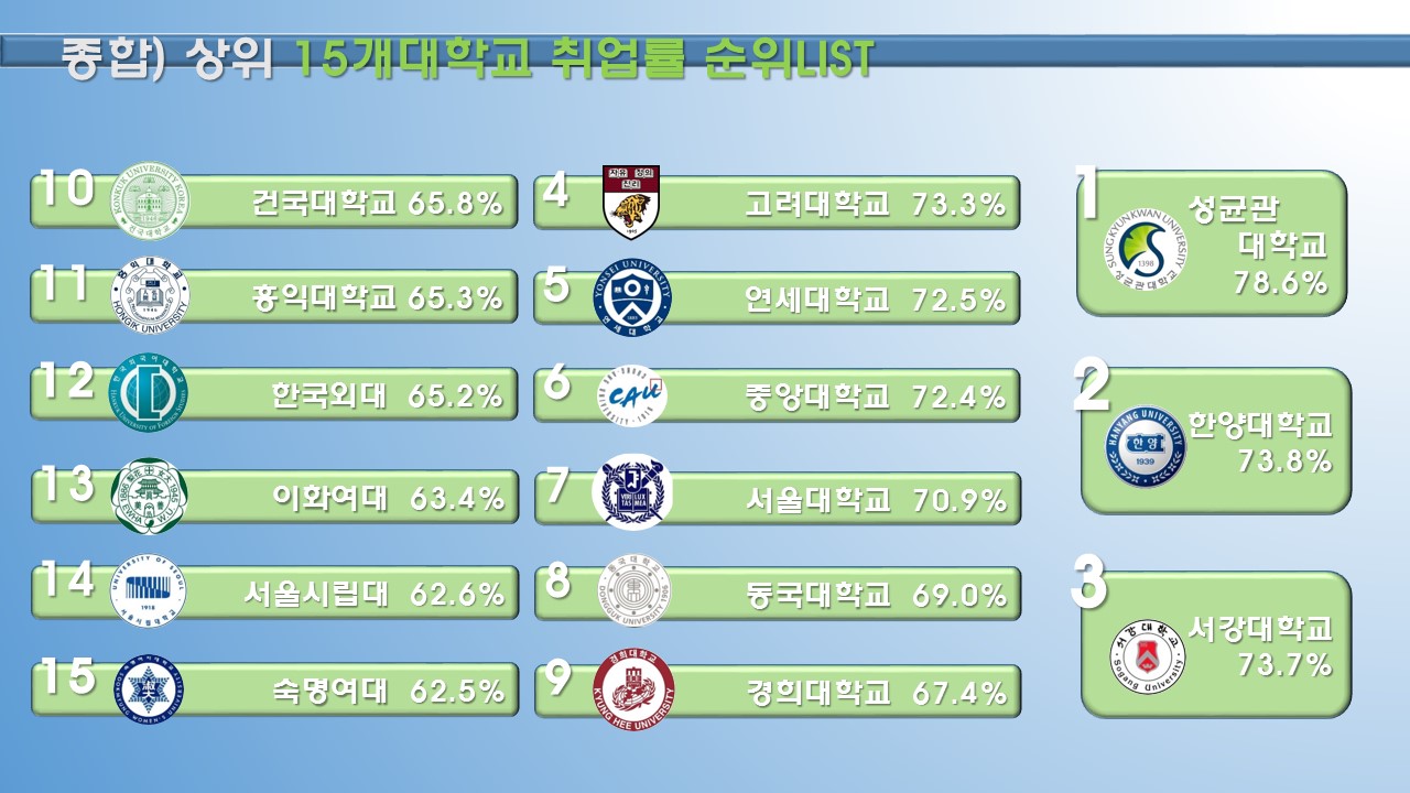 어느 대학교가 높은 취업률을 기록했는지 확인해보시기 바랍니다.