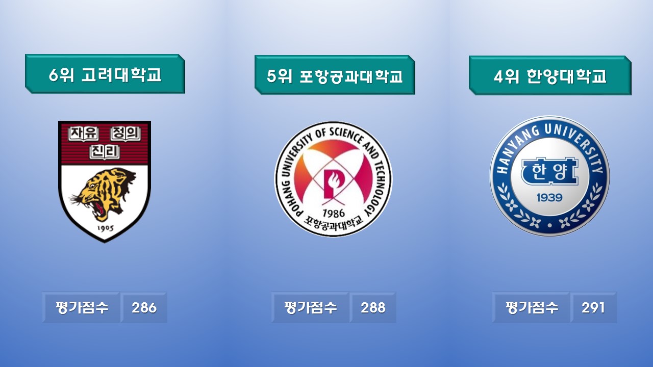 다음은 TOP 3개 대학교를 확인해 보시겠습니다.