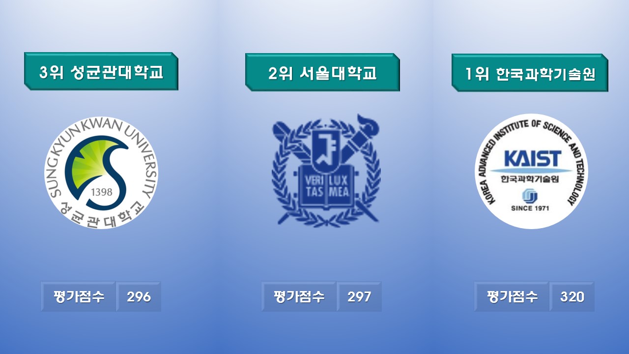 광주과학기술원이 역량에 비해 다소 낮은 순위에 위치한 느낌이네요.