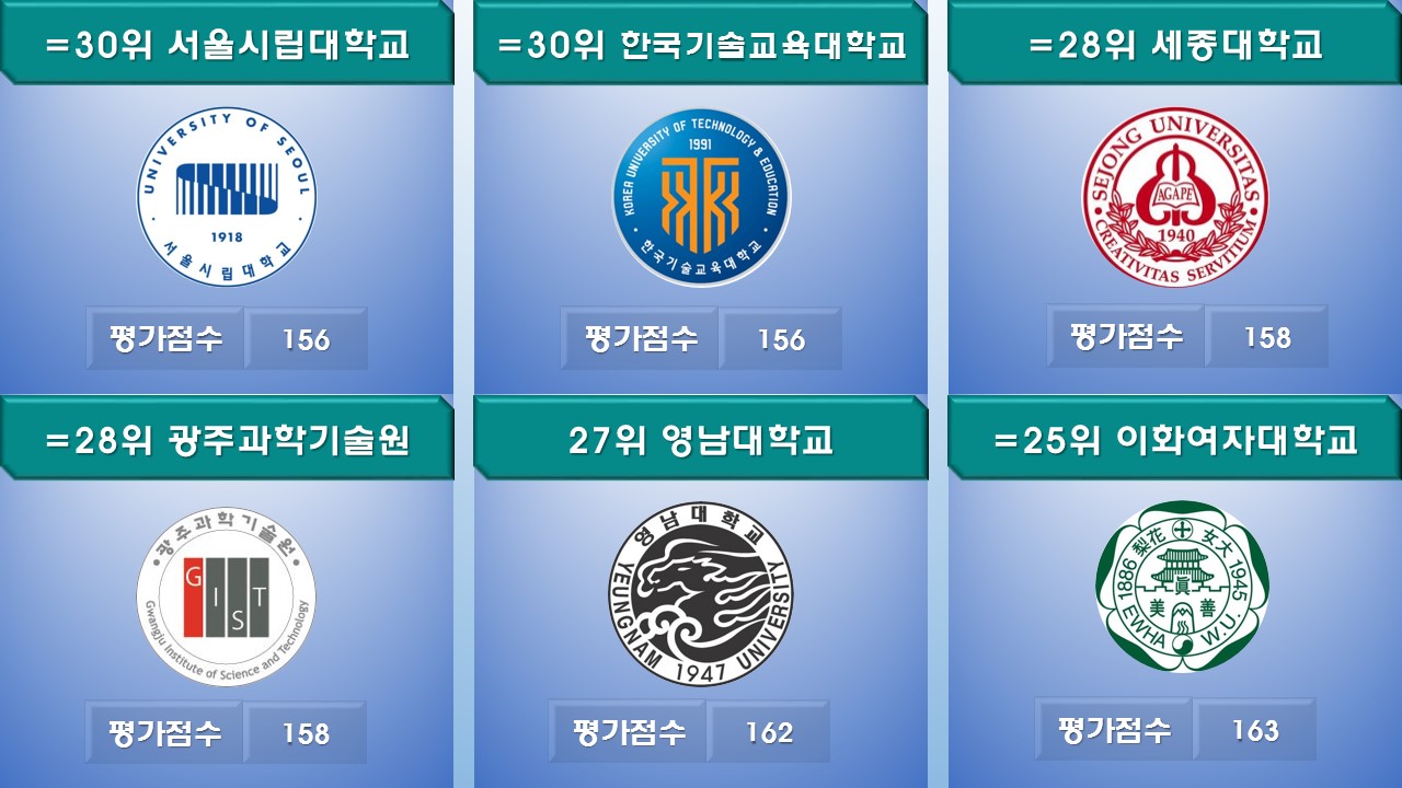 공동 30위에 서울시립대와 한국기술교육대학교입니다.