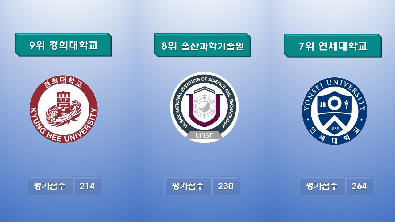8위는 울산과학기술원 UNIST가 차지했습니다.