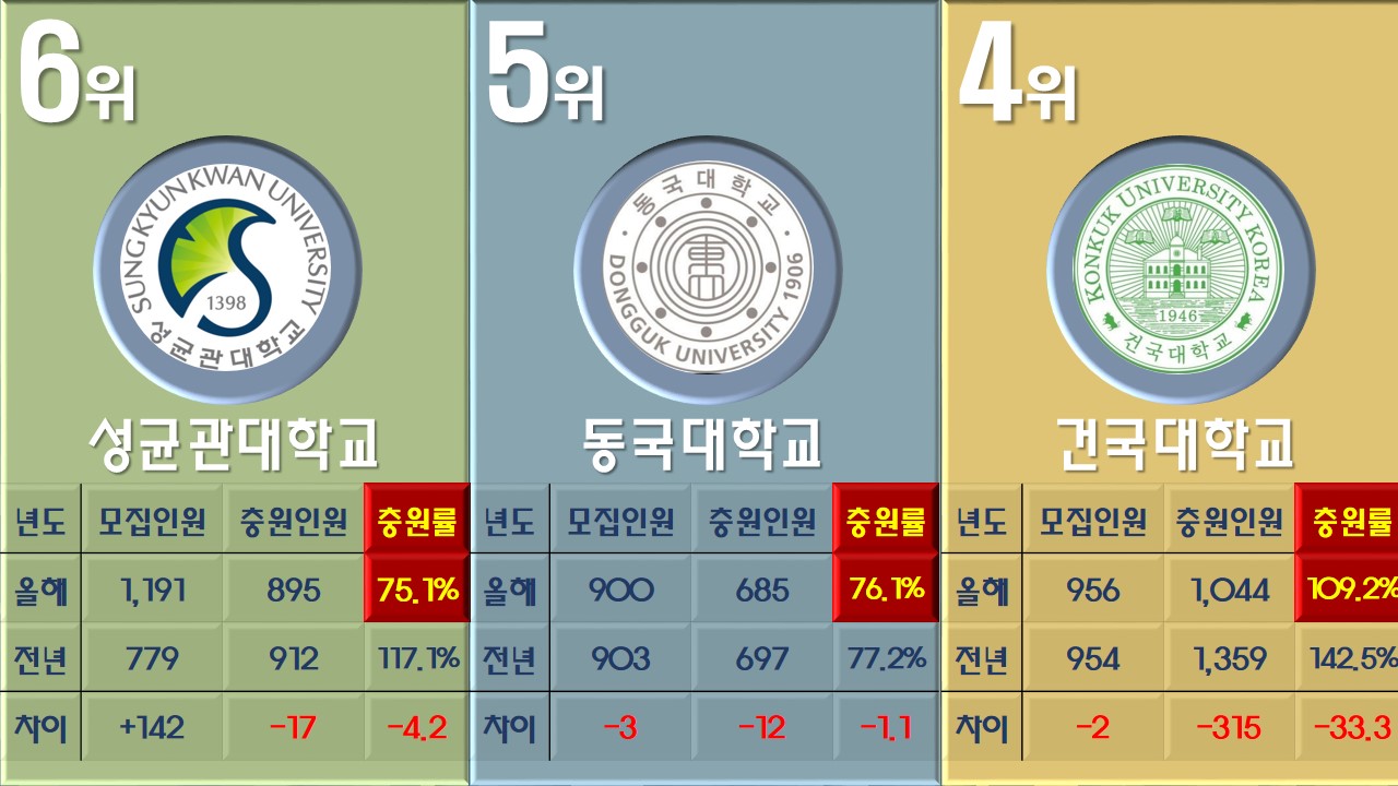 그럼 충원률이 낮은 순위부터 높은 순위로 시작하겠습니다.