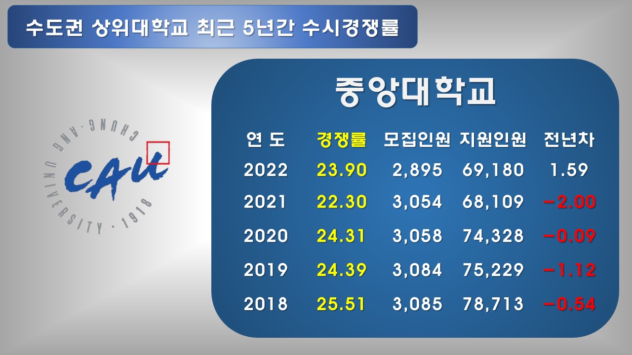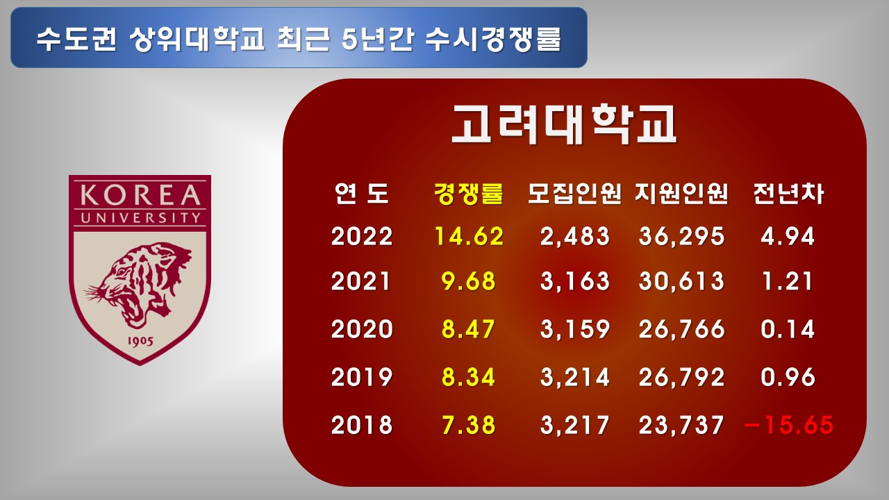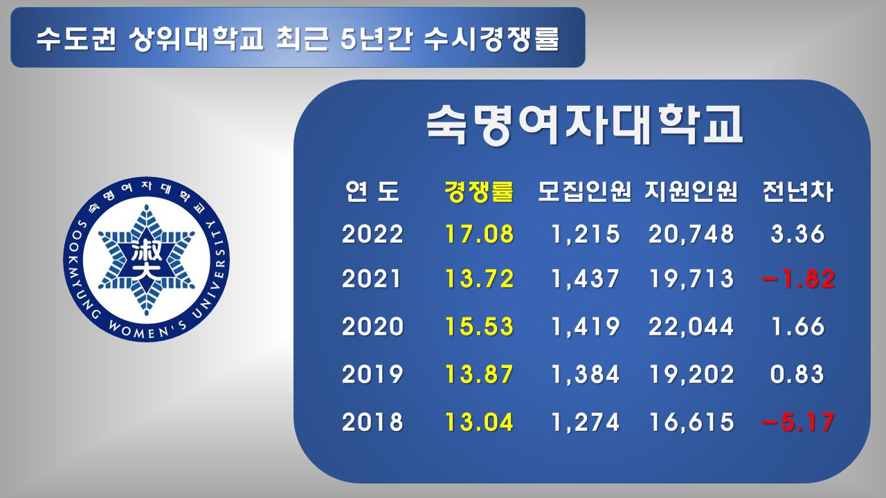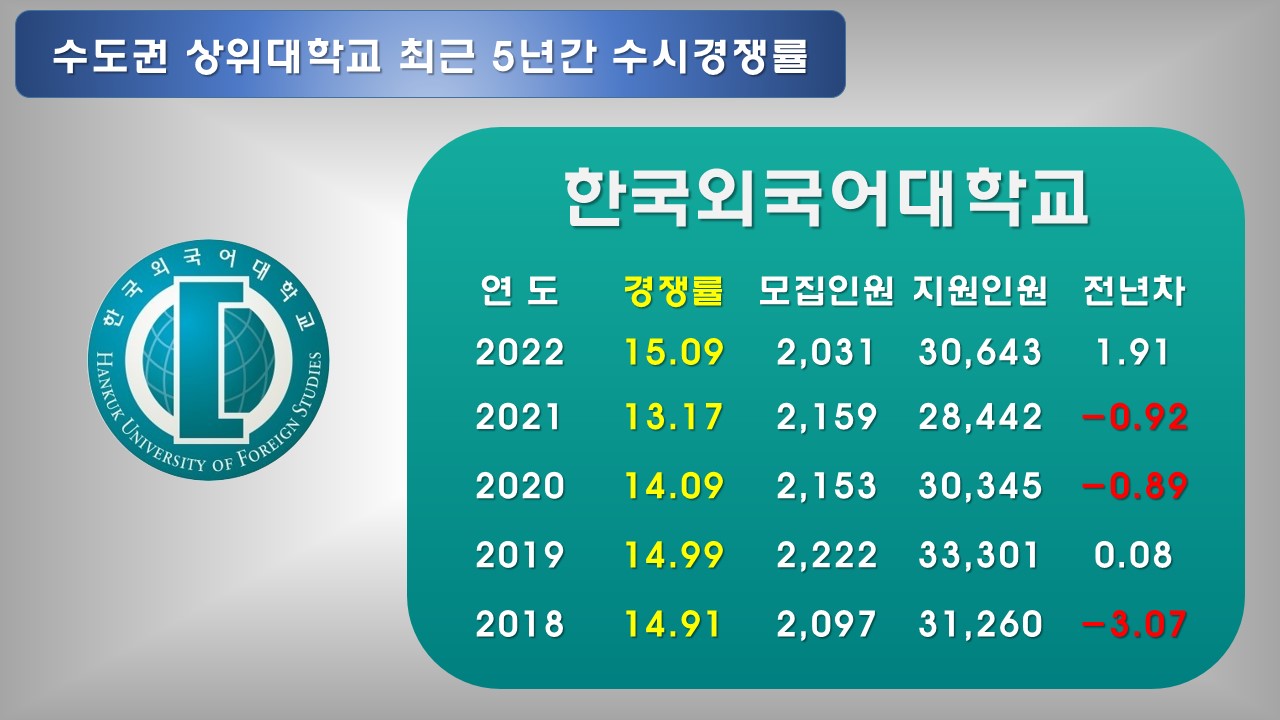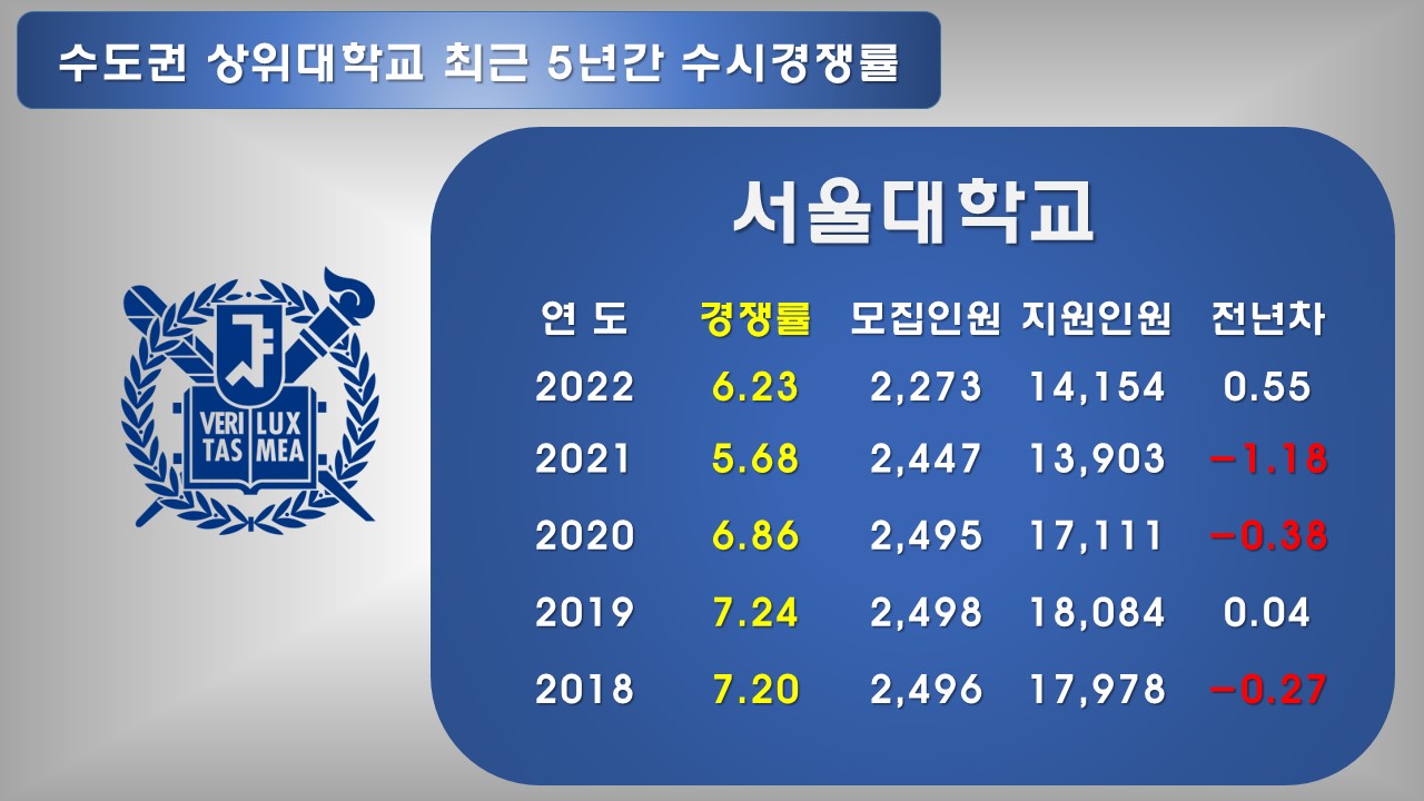 서울 내 상위 대학 경쟁률 순위"에 이어