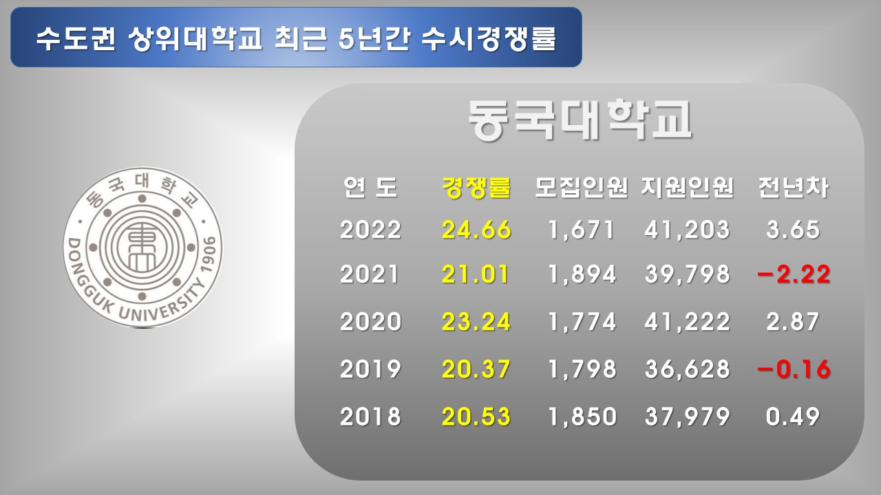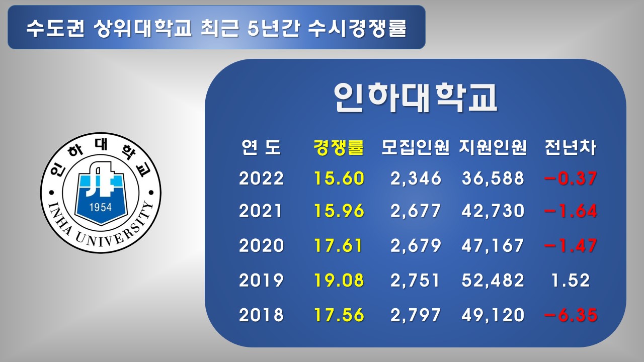 매년 조금씩 경쟁률 감소 추이에 있다가