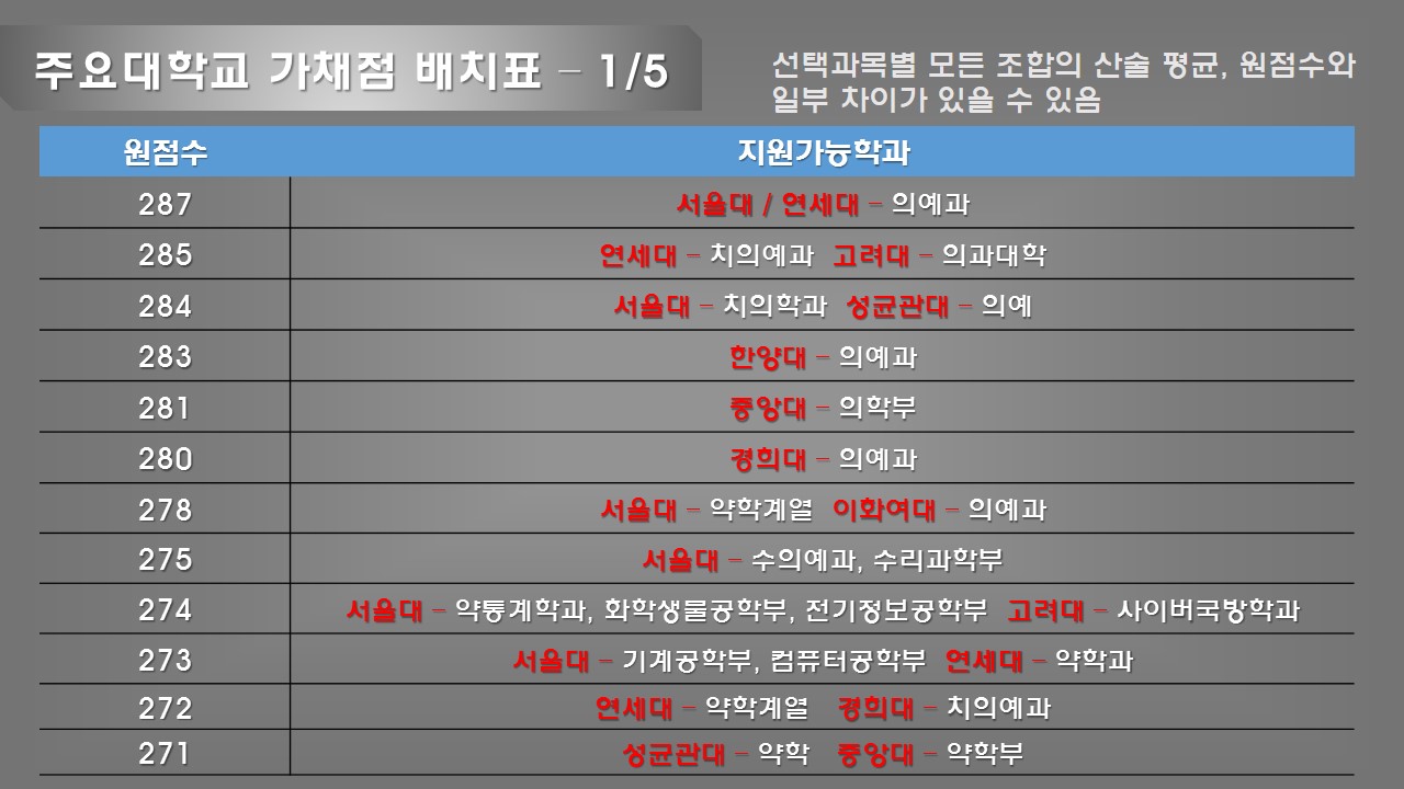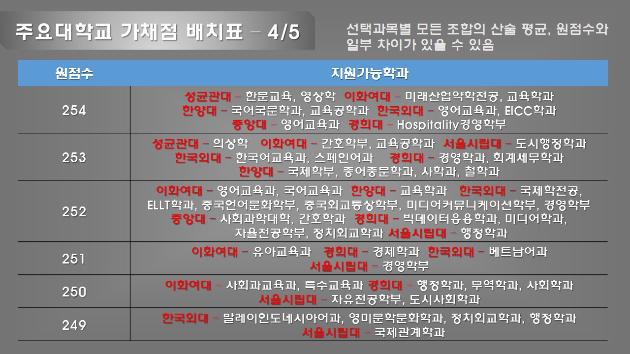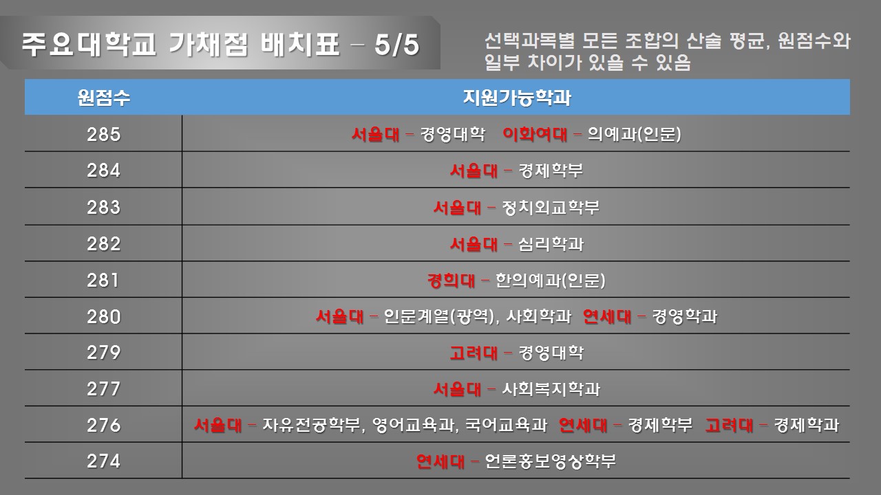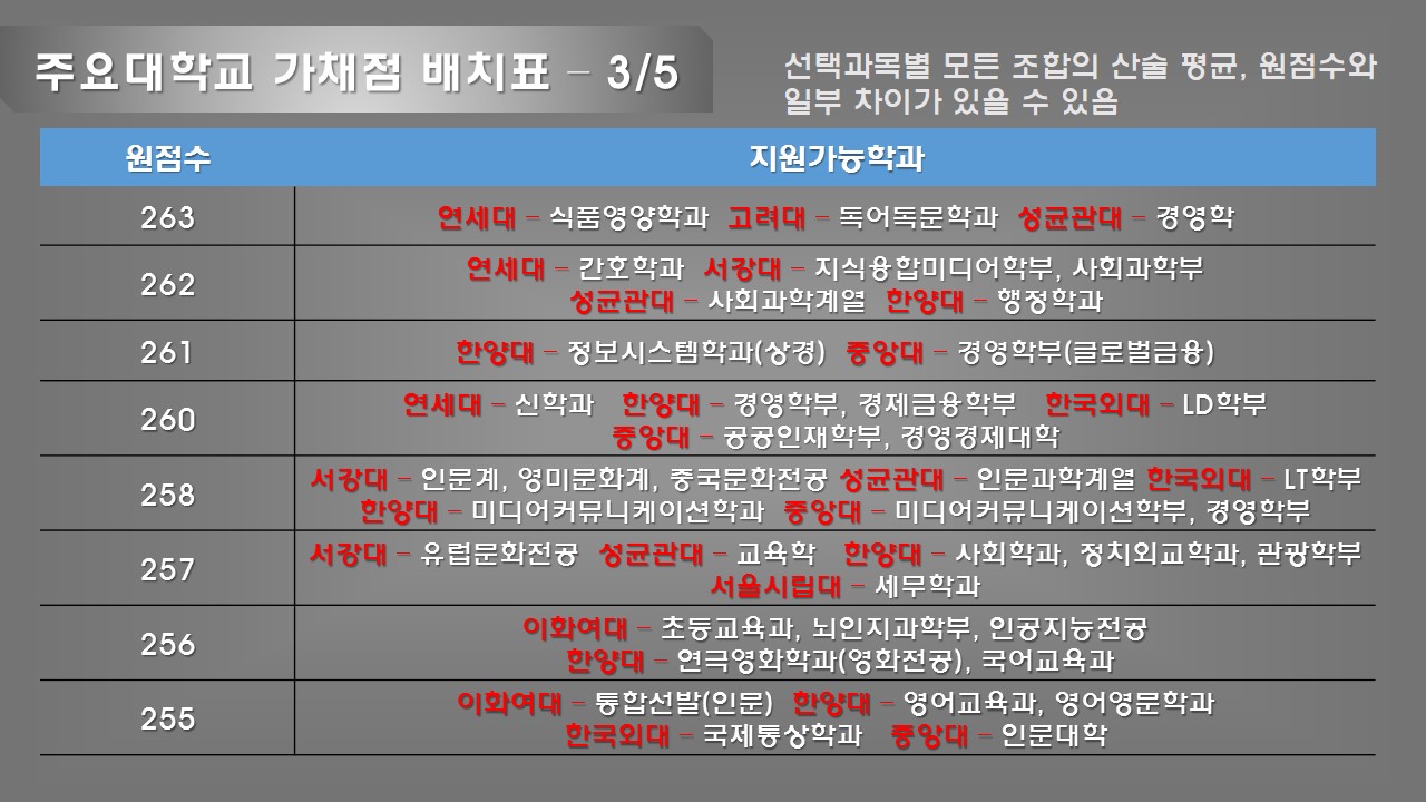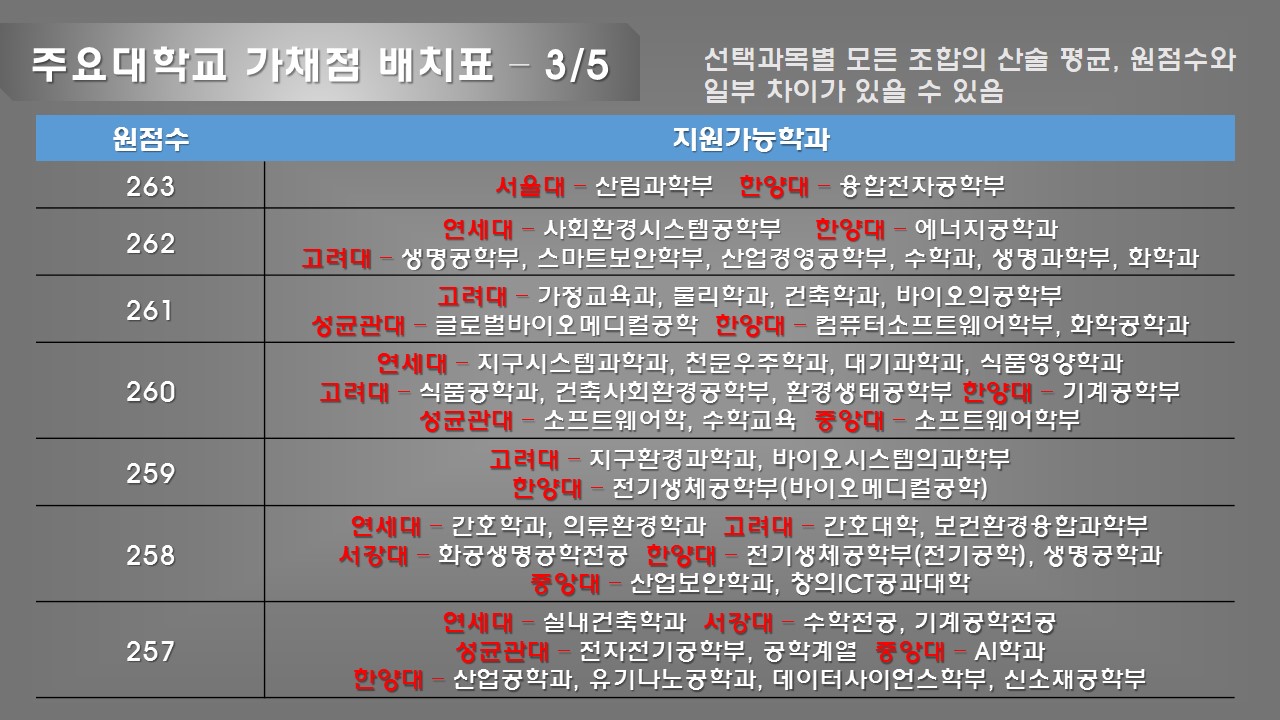 이상으로 주요 대학교의 배치표를 확인해 보셨습니다.