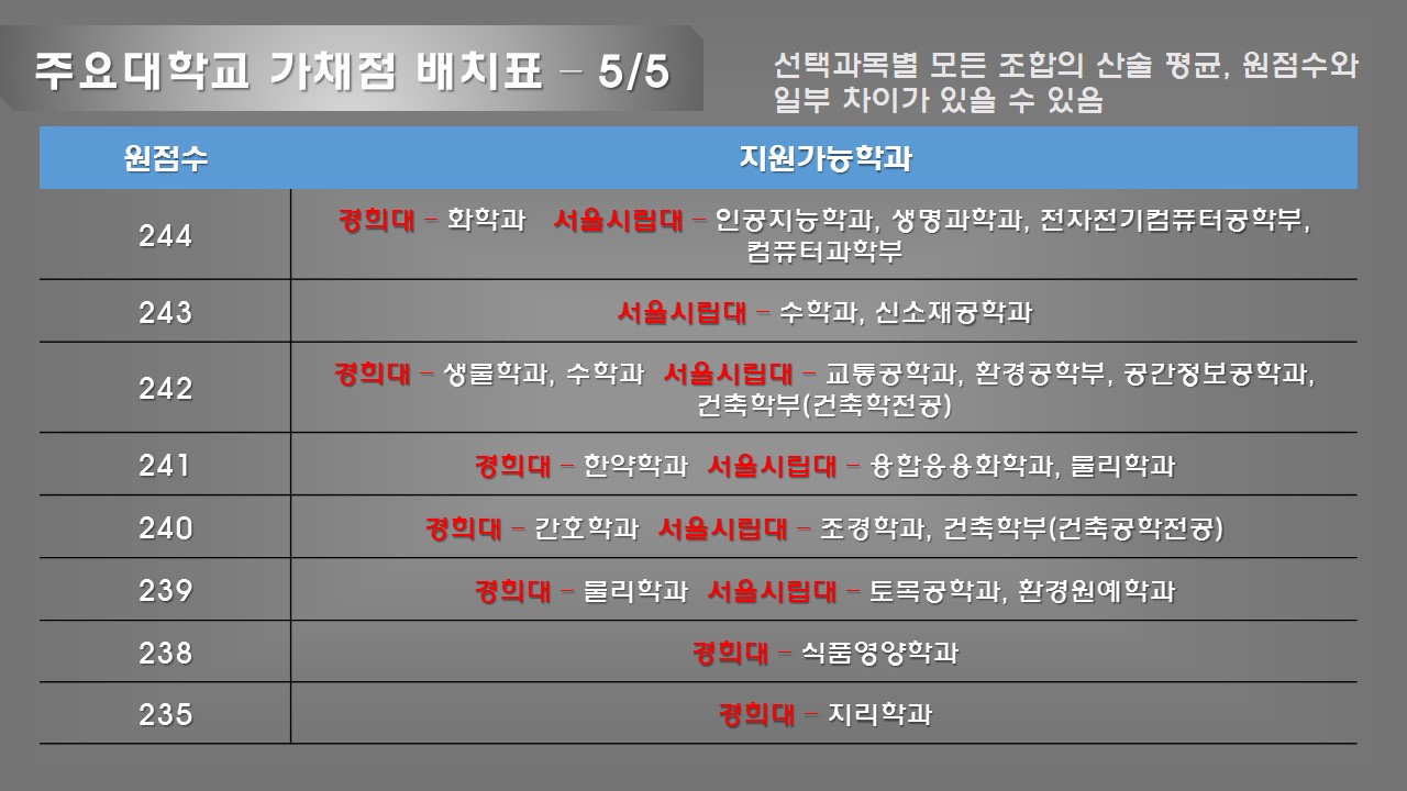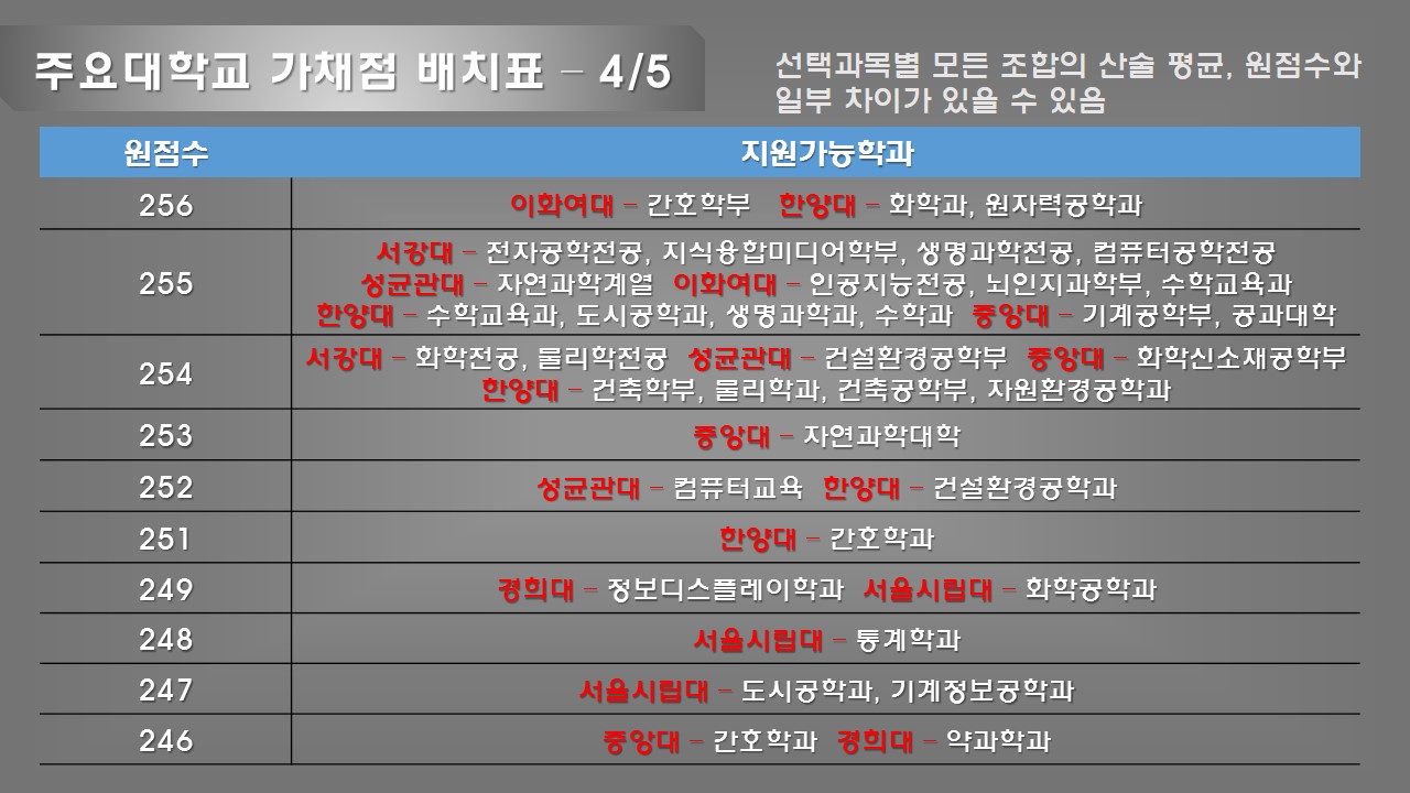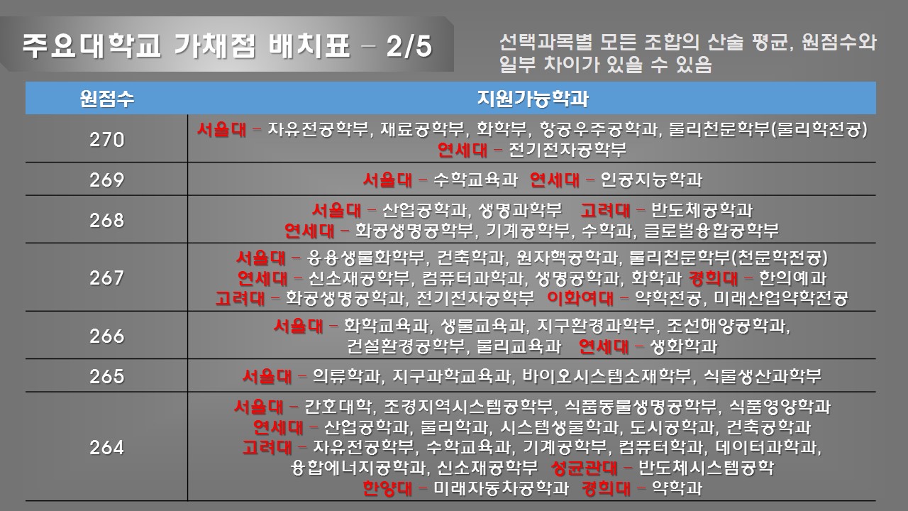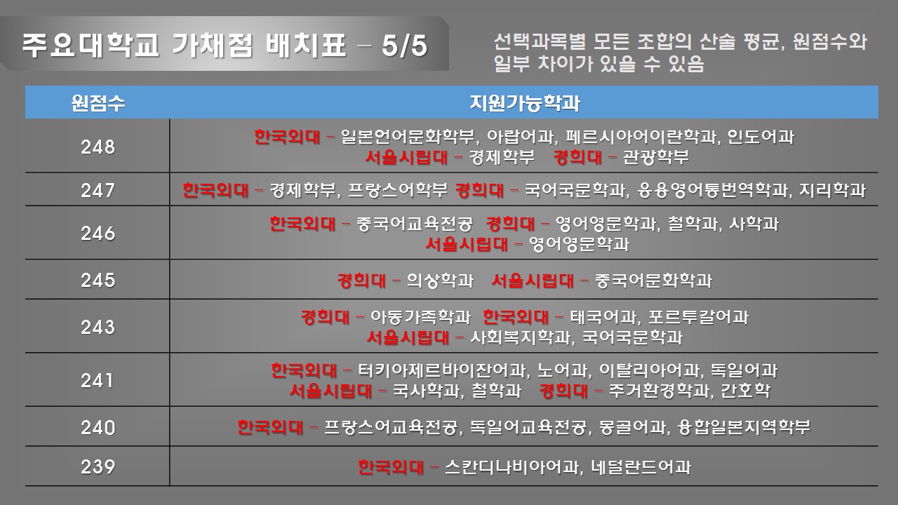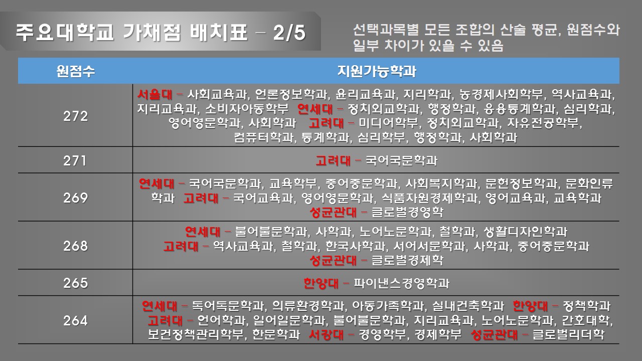 이상으로 주요 대학교의 배치표를 확인해 보셨습니다.