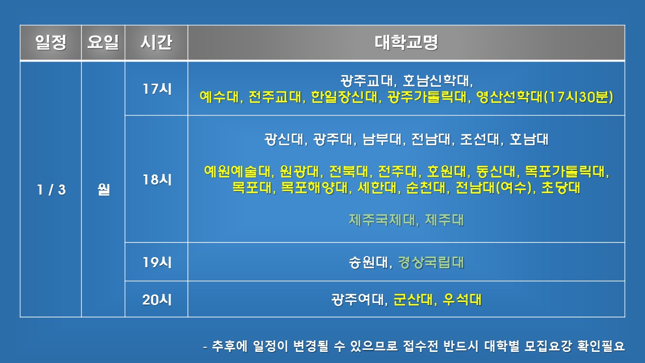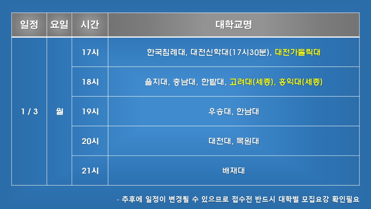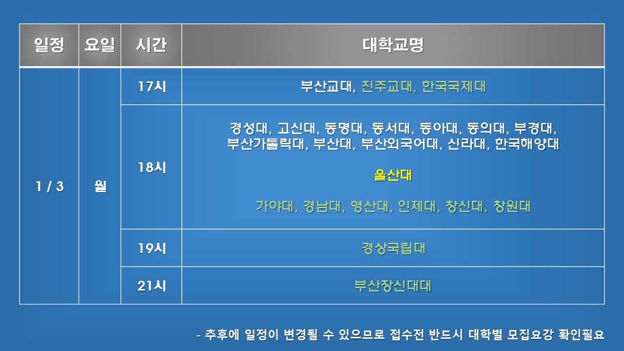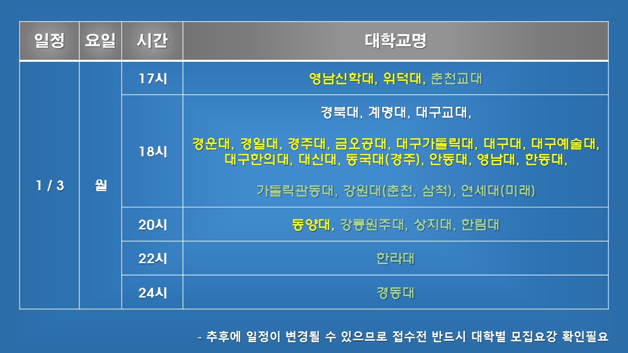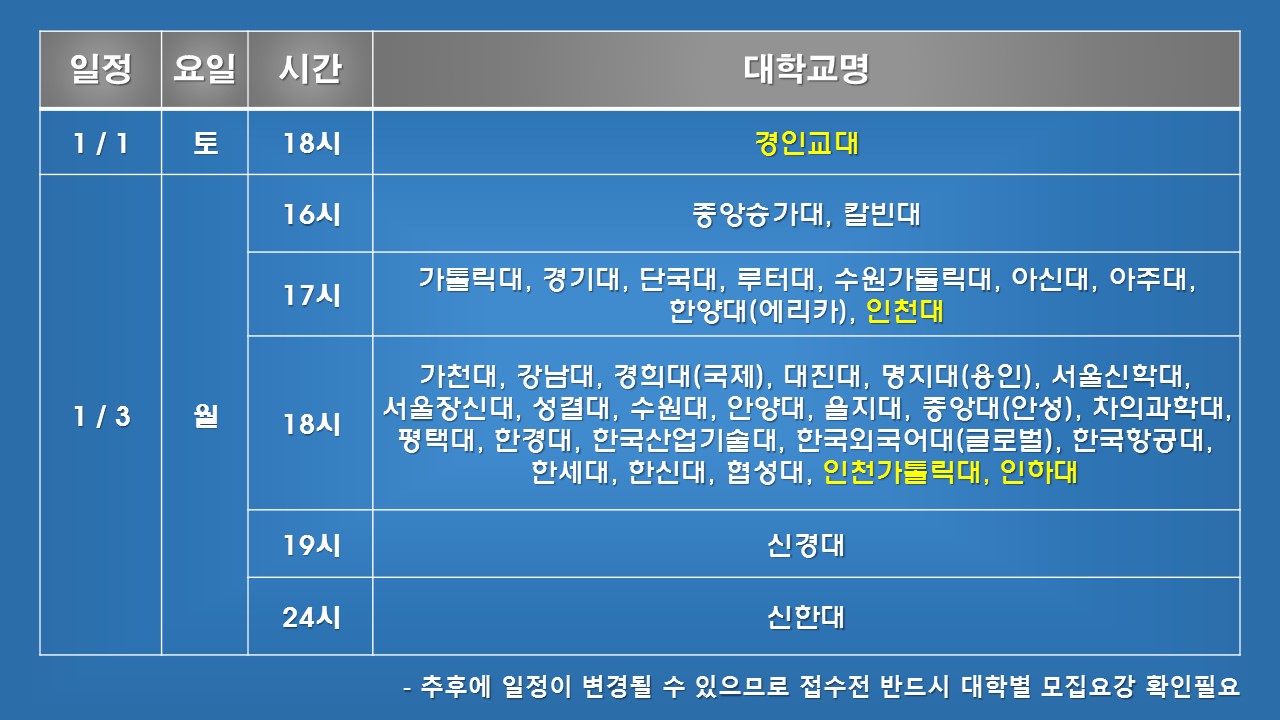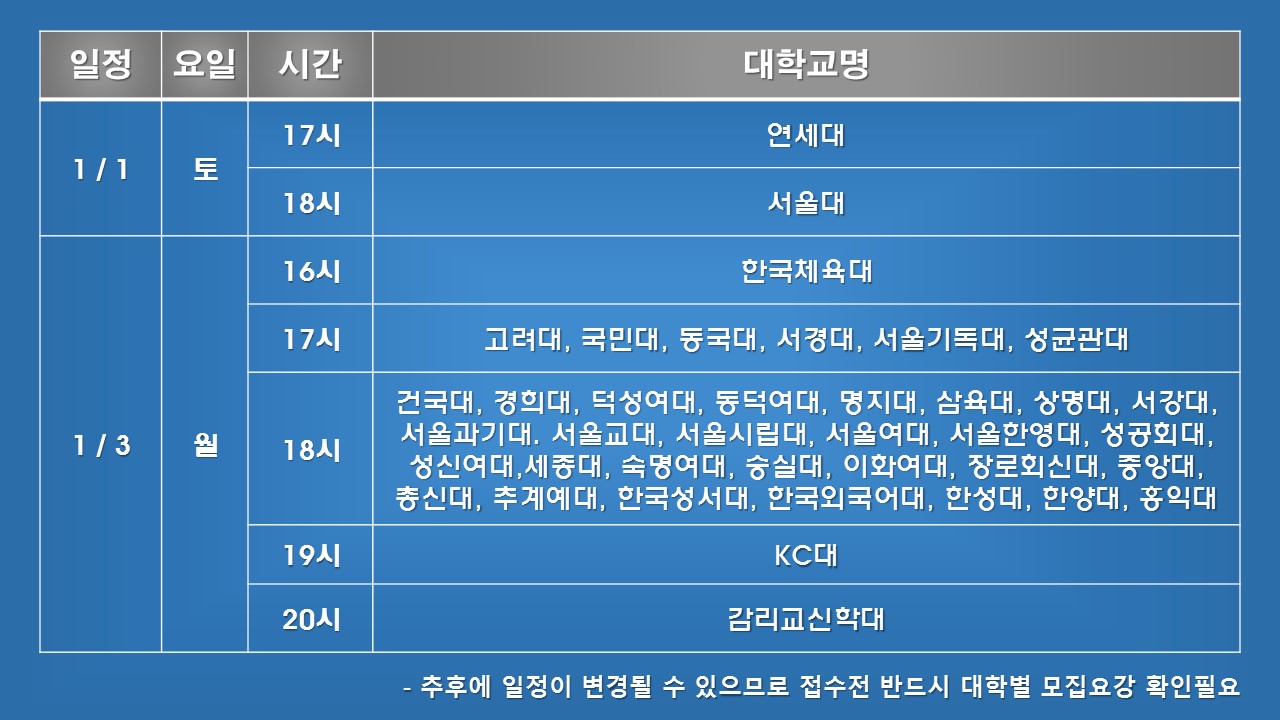 이후 대학 개별적으로 일정이 변경되는 것은 반영이 안 되었으니