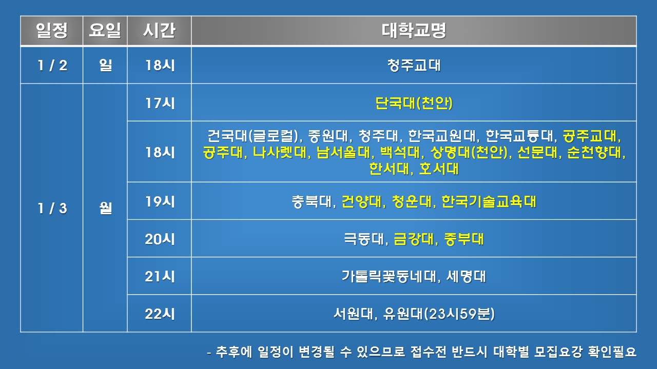 이후 대학 개별적으로 일정이 변경되는 것은 반영이 안 되었으니